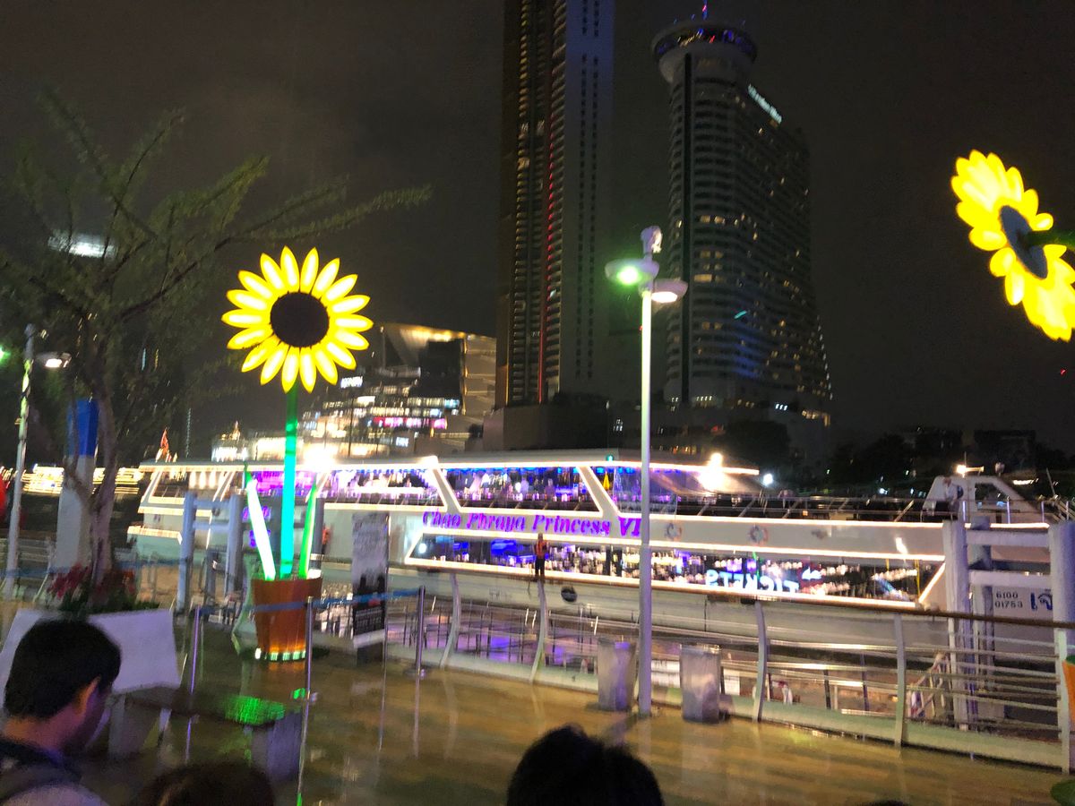チャオプラヤクルーズは2回目。賑やかなのが嫌いなので、前回同様ビュッフェではなく、こじんまりしたコース料理のプランを選択しました。ホテルのクルーズよりここは少し値段が高かったので期待しましたが、少々がっかりです。①乗船時間になっても誘導がなく不安になりました。家族での利用だったので一層です。②メニューがテーブルごとに置かれておらず、何を食べているのか、あと何品くるのかがわかりませんでした。③前回のホテルのクルーズは寺など航路上の見所の説明パンフレットがありましたが、今回はいくつか口頭で名称だけアナウンスされただけでした。④わずか3組しか客がいなかったのに、スタッフはバタバタしていて、サービスも丁寧ではありませんでした。⑤食事はおいしかったですが、量が多く、デザートのカオニャオマムアンはもう少し小さくてもよかったです。他のお客さんは持ち帰りをしていました。⑥今回はなぜか少し船の揺れが気になりました。気候の影響なのか、使用している船のせいなのかはわかりません。以上です。静かにチャオプラヤクルーズディナーを楽しむにはいいのですが、値段を考えると他のホテル主催のコースディナーのクルーズの方がいいと思います。