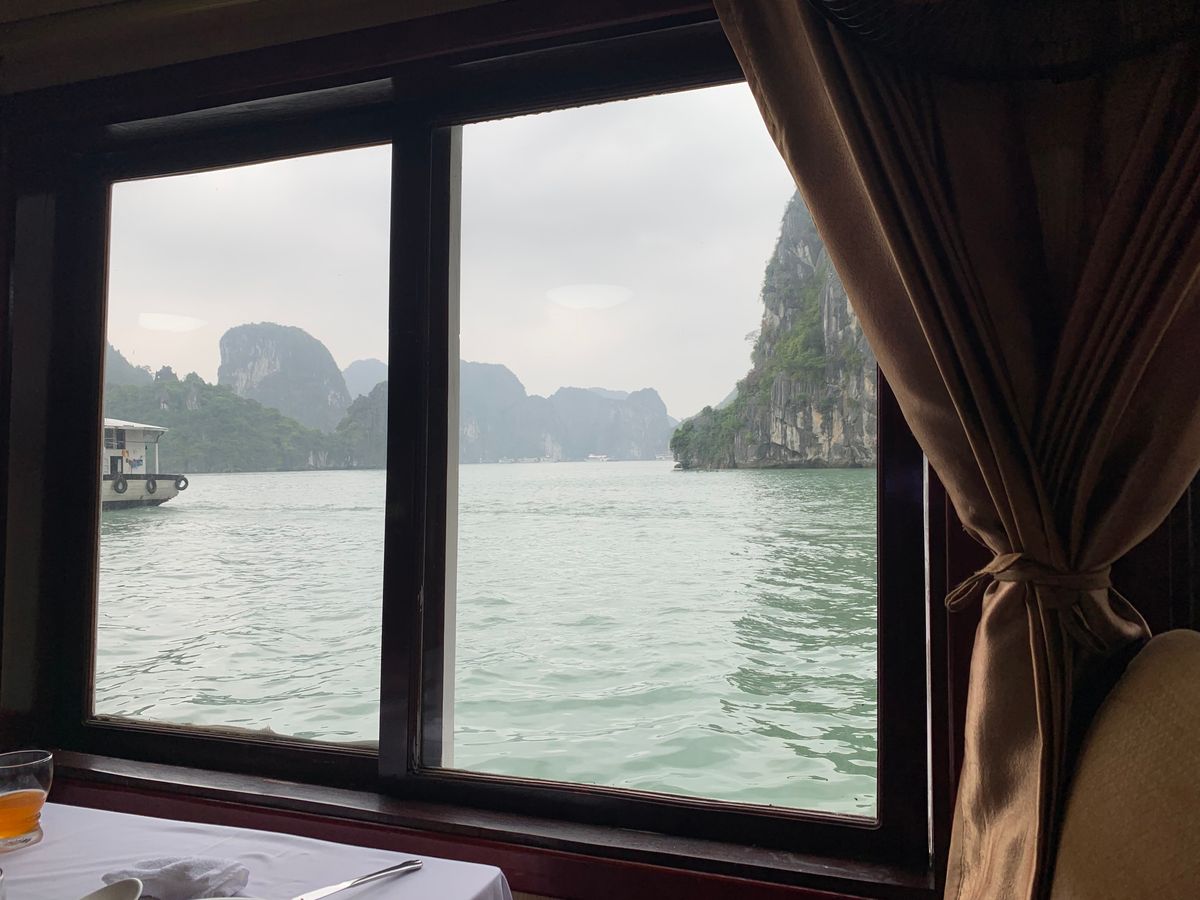 小雨でしたが、景色も良くて料理も美味しくて良かったです。船内での販売では特に欲しいものがありませんでしたが、いらなかったら断る事も出来ます。実用性のあるものだったら購入したかも。洞窟は超オススメです。ベトナムの交通事情で仕方がないとは思いますが、帰りが渋滞しているので夜の時間か決まった予定などは入れない方がいいと思います。オススメのツアーです。
