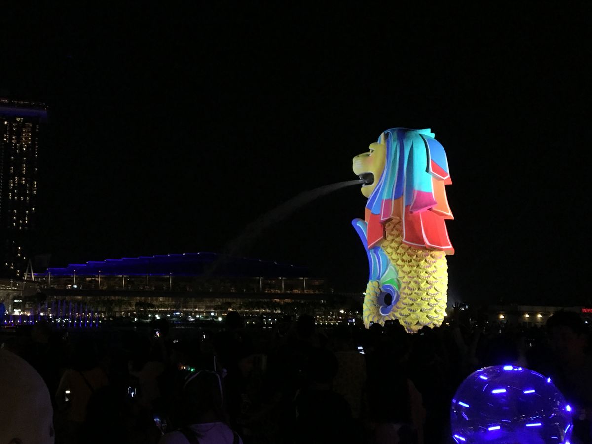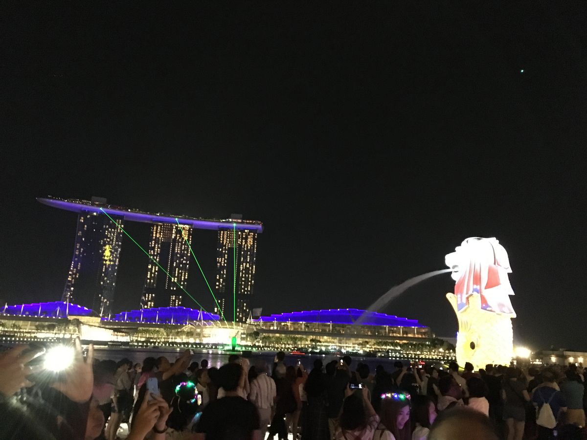 最初のベイサンズの噴水ショーは遠くて迫力に欠けましたが,マーライオンのプロジェクションマッピングが個人的には良かったので,そちらをメインに見ました。