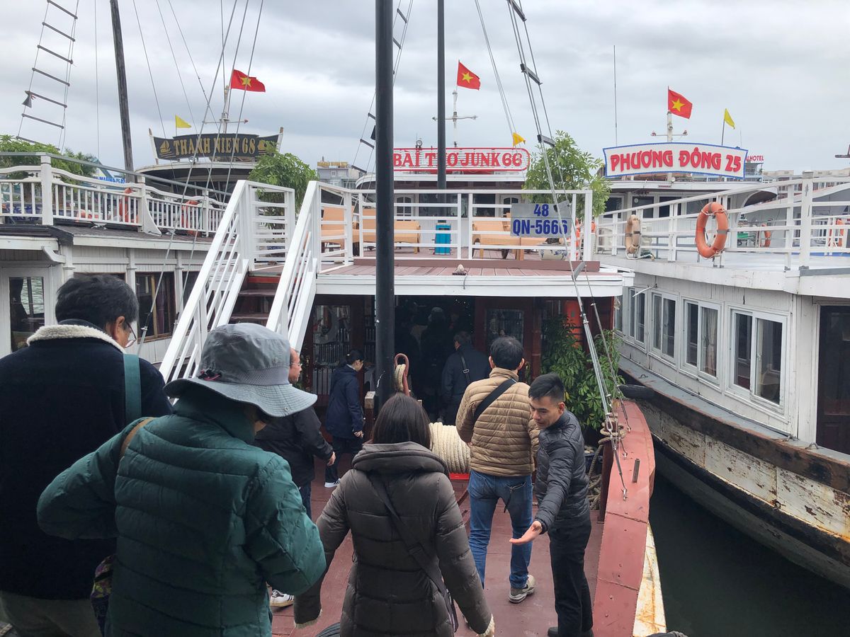 効率重視で高速道路を通るツアーを予約。前夜遅くのハノイ到着であったので、出発時間に余裕をもって向かうことが出来て、結果的に良かった。参加者の一人が無断で離断してしまい、出航が遅れるハプニングがあったが、日本語ガイドのランさんの機転が利いた対応や丁寧な説明で、充実した時間を過ごせた。