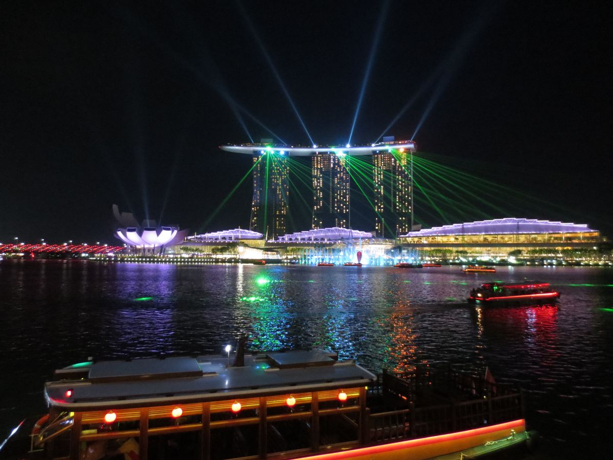 昼間見ると汚れた水質ですが、夜だとわかりません。シンガポールの夜景を楽しむのには、良いツアーかと思います。リバークルーズからの夜景特に良いかと思います。ただ、汚い河岸が目の前にみえるので、周りを見る方が良いでしょう。光のショーはマーライオン公園から見るために噴水ショーなどは遠くで、少しガッカリです。ガーデンズバイベイの光のショーもまあこんなものかという感じで、15分程上を見上げていなくてはならず、寝転んで見ている方もいました。シンガポール始めてなら、このツアーは一度は経験しておいたら良いでしょう。