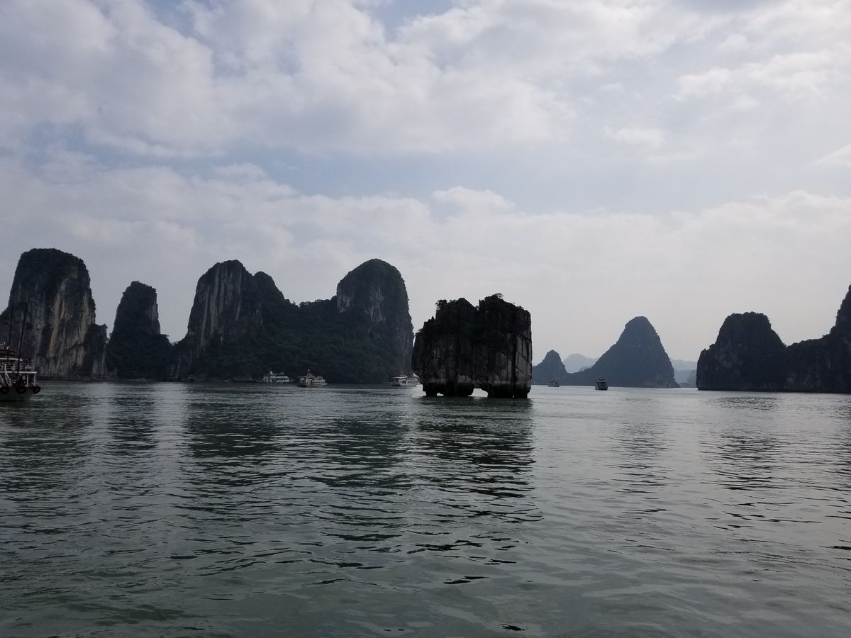 当日は曇だったので出航前は霞んでいて写真でみたようなハロン湾ではなかったですが、船が岩の近くに進んでいくと輪郭もハッキリしてきて写真もまぁまぁきれいに撮ることができました。