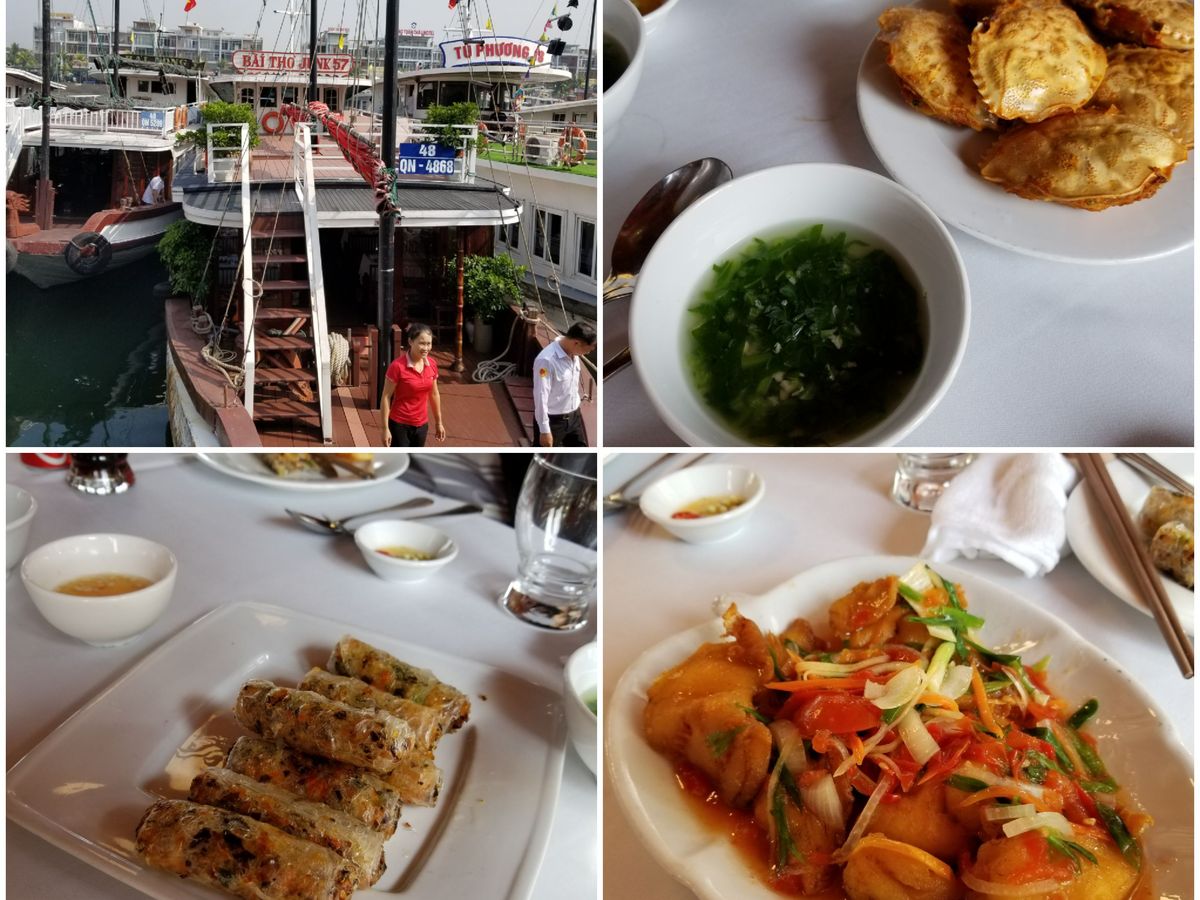食事についてですが、どの料理も美味しかったです。揚げ春巻きなどのベトナム料理も堪能でき、量も多くて大満足でした!途中、カニなどの海鮮が船上で売られ、購入したらその場ですぐに食べられるよう調理をしてくれるサービスもありました!