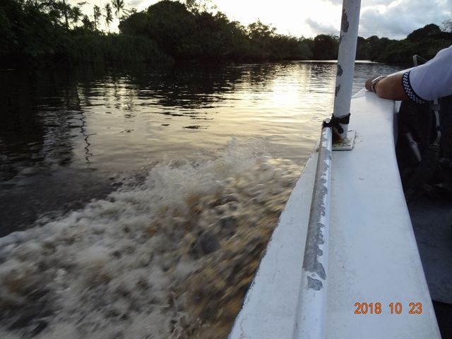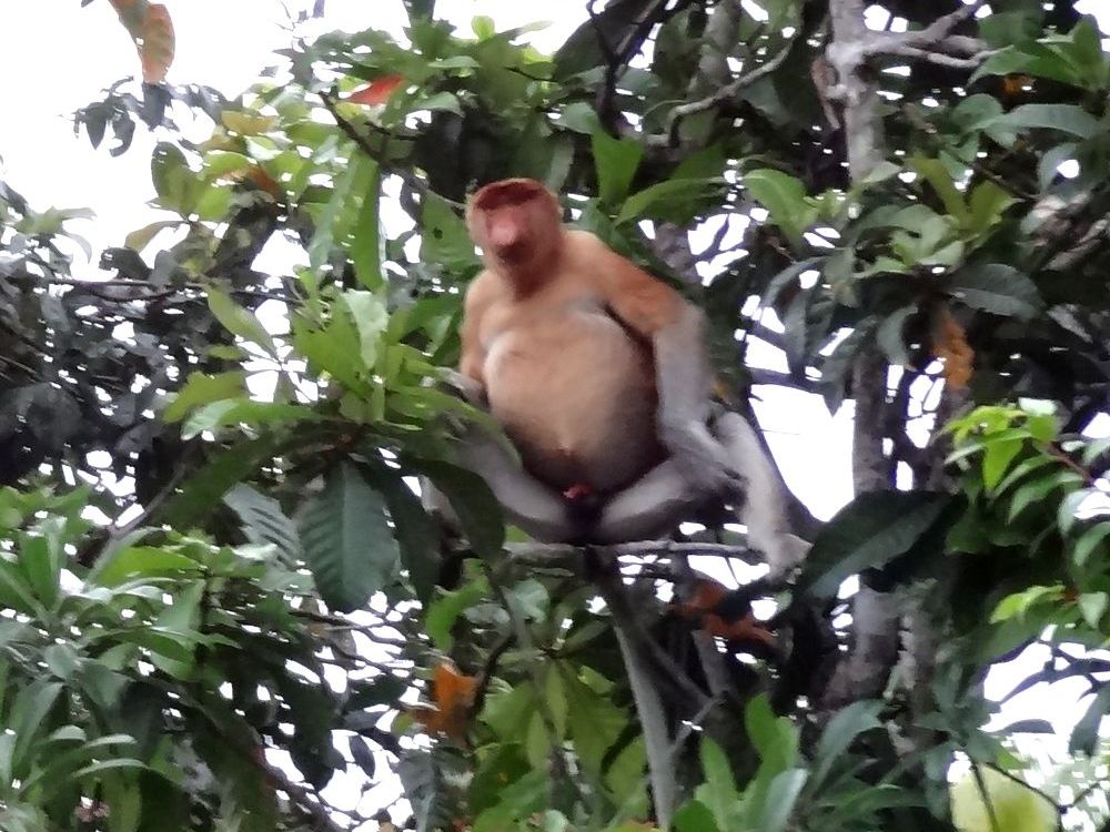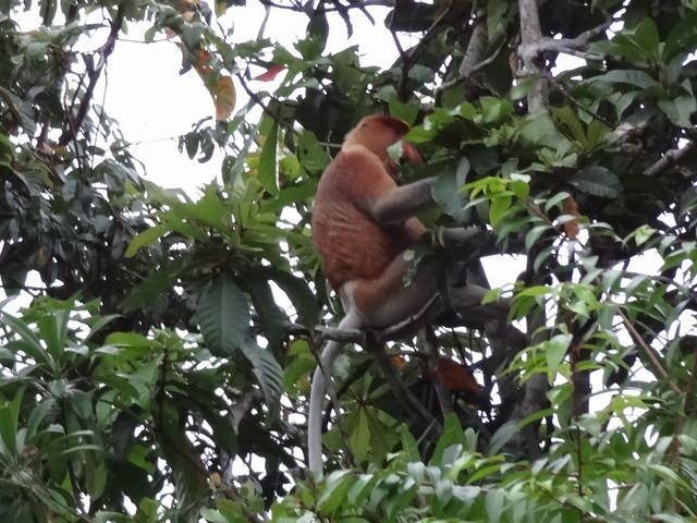 樹木に紛れているので、目のなれない素人にはテングザルを発見するのは難しかったが、ガイドさんやほかの観光客が目ざとく見つけてくれたので、かなりの数のテングザルが鑑賞できた、難点といえば、ほとんどが遠くの樹木にいたので肉眼でかろうじてサルだとわかる程度、願わくば、船のすぐ近くの枝にいて、カメラをズームせずとも、その表情まで、見えればもっとよかった。とはいえ、満足しました、ありがとう。