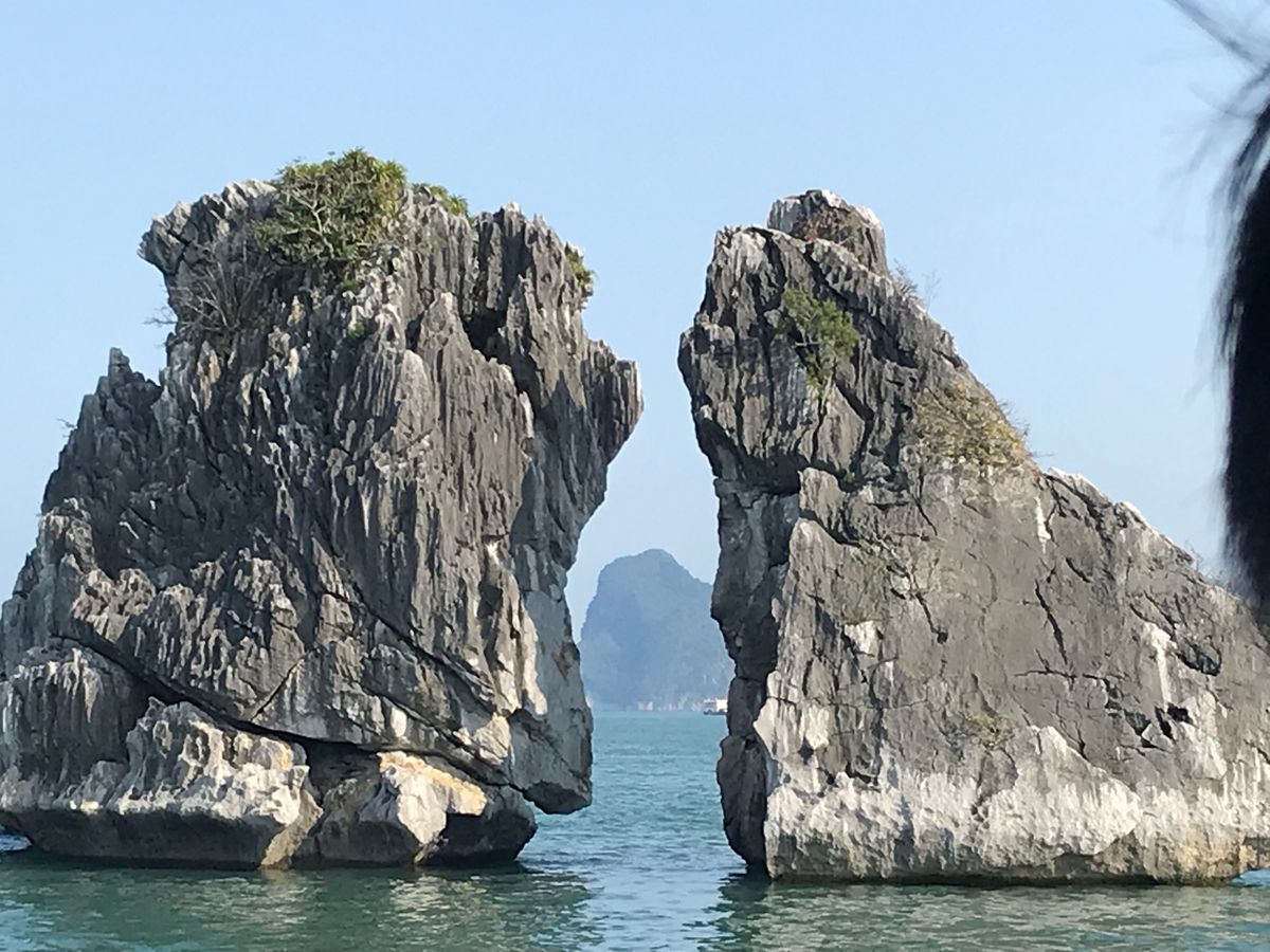 ハロン湾クルーズ、天気予報は雨でしたが晴れてくれて本当に良かったです!遠くからみると雲がかかっていましたが、近くによるとどっしりと佇む岩がはっきりと見えました!