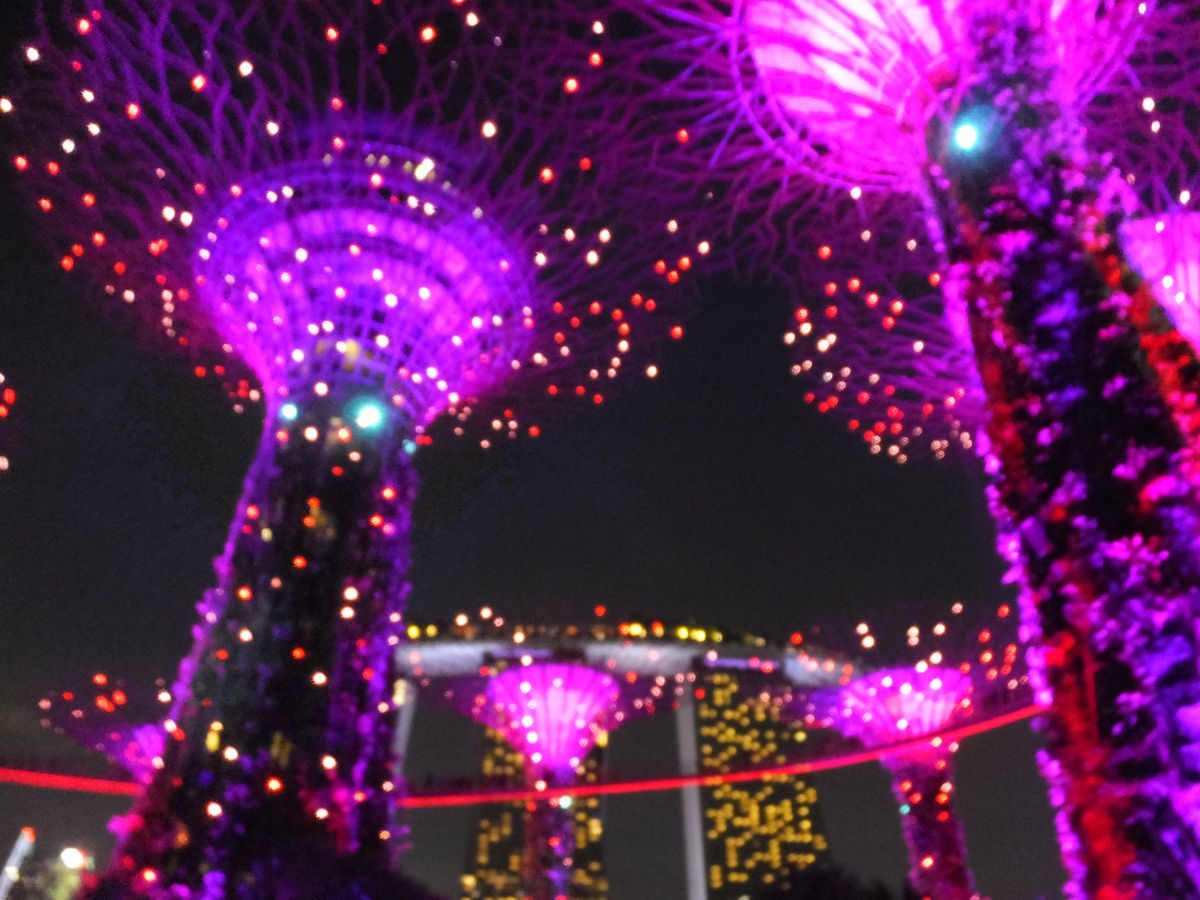 マリーナ・ベイ・サンズのショーは対岸から見るので音楽もあまり聞こえず、時間も少し長くも感じましたが、ショーが終わってから夜のマーライオンと記念写真を撮る事が出来たし、ガーデンバイザベイではツリーの真下で幻想的な雰囲気を体感する事ができました。