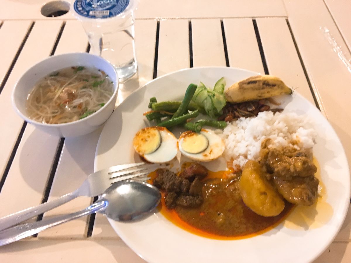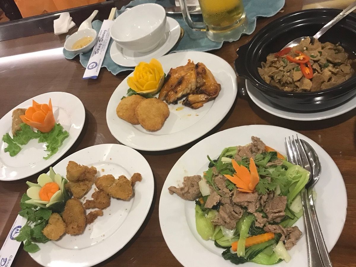 ここで素朴な疑問です。キャンセルとなったクルーズ料金相当分はどこにいってしまうのでしょうか?ちなみにクルーズの代替となるバッチャン村はいわゆる「お買い物ツアー」です。昼食のレストランは豪華でした。食事内容について感じ方はひとそれぞれですので客観的事実をひとつ、デザート(水物)が皮つきバナナまるまま1本でした。