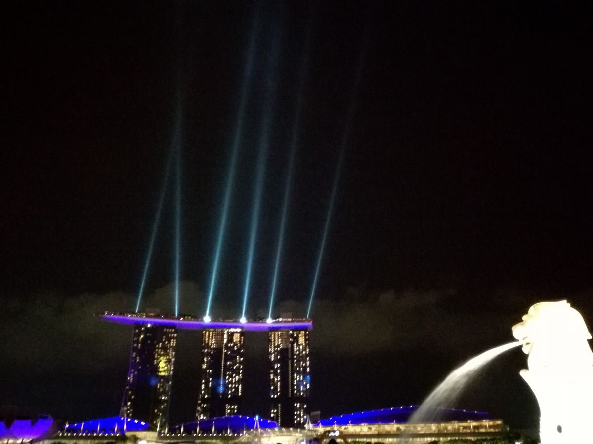 マーライオンパークからマリーナ・ベイ・サンズで繰り広げられる光のショーを見学