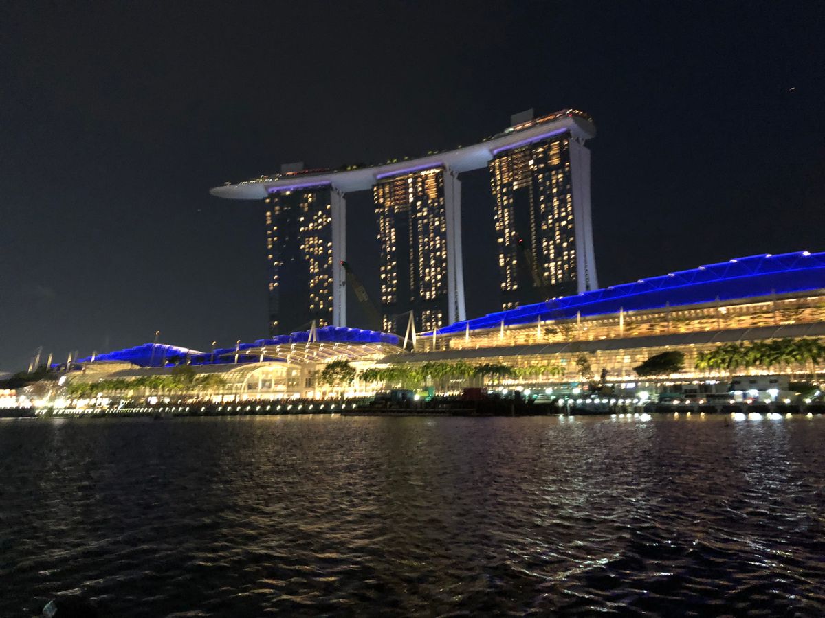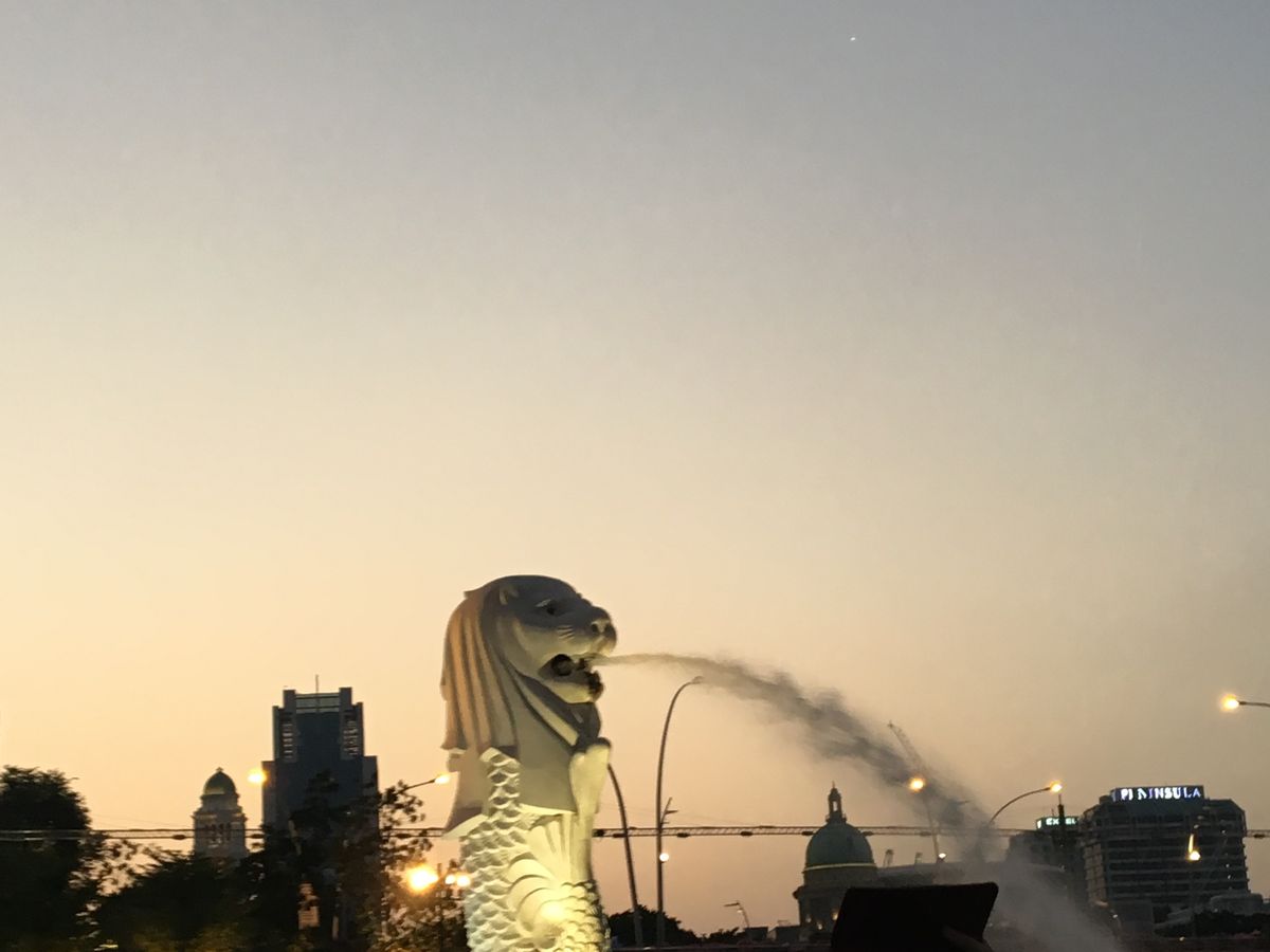 そして、バスに乗り、クラークキーへ、リバークルーズで、マリーナを回り、写真をたくさん撮りました。次に、マリーナのショーを見ました!ベイサンズがすごく綺麗で、マーライオンもライトアップされていて綺麗でした。