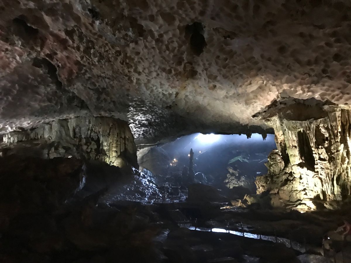 一人でツアーに参加しました。片道3時間半?ぐらいで、途中トイレ休憩をかねてお土産屋さんに寄りました。トイレはきれいでした。バスは多少揺れるので、バス酔いされる方は酔い止めの薬は必須だと思います。着いてからはガイドさんさの指示に従って乗船しました。すぐにお昼ご飯が準備されましたが、写真を撮ったり、ご飯を食べたりと自由な感じでした。そして、だいたい食べ終わったら、みんな自由に過ごしていました。40分ぐらいしてから、洞窟見学でした。洞窟は広くてきれいで、とてもよかったです。写真もたくさん撮れました。見学はだいたい30分ぐらいだったと思います。そしてまた船に乗ってバスに揺られて帰ってきました。一人での参加でしたが、全然気にならず楽しめました。
