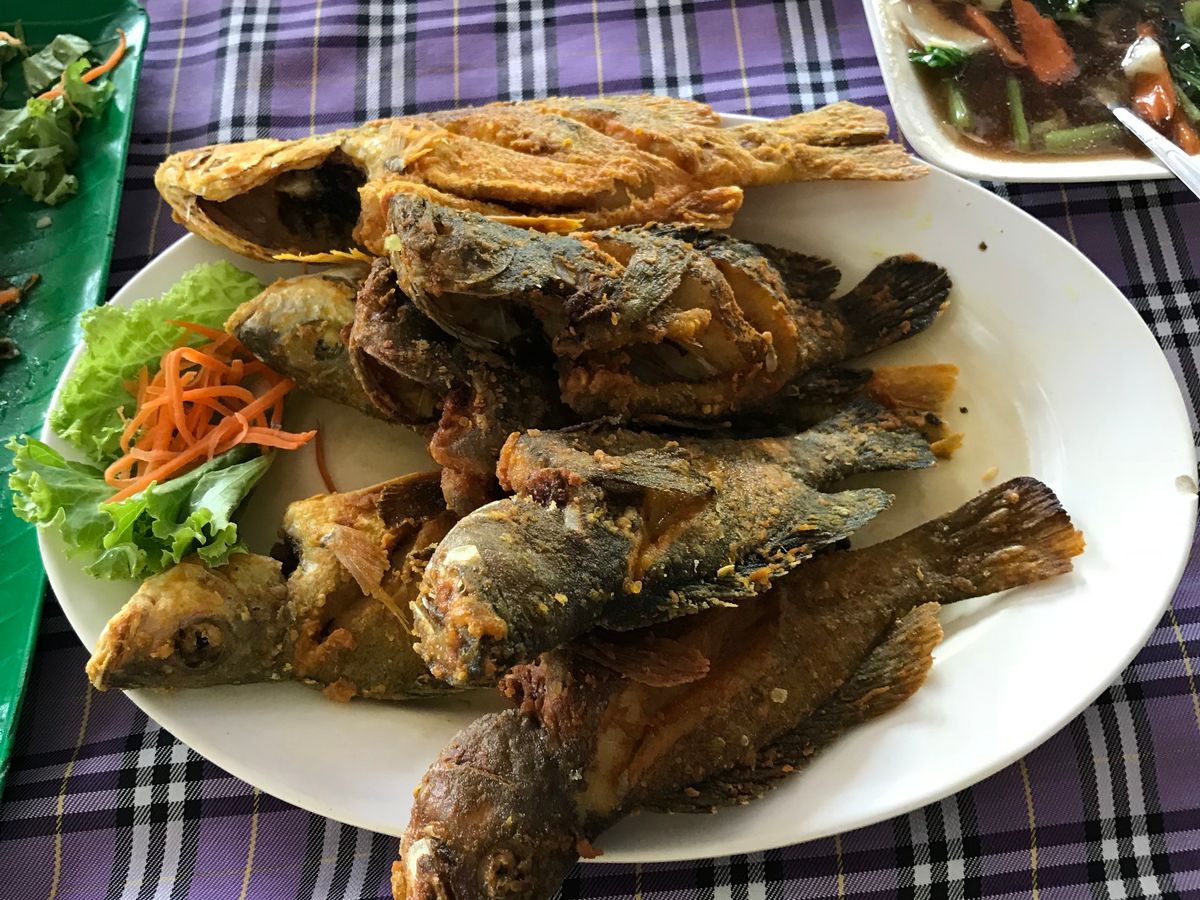 ツアーは猿やコウモリのいる鍾乳洞を見学し、ワシの餌付けを見たりマングローブの根本にいる蛇を発見したりとなかなかバラエティに富んでいました。特に感激したのが、手釣りでボートの上で魚を釣った事です。結構大きな魚を私も主人も2匹ずつゲットできました。船長さんがどんどん釣ってくれたので、お昼ご飯に新鮮な魚な唐揚げが山盛り並びました。