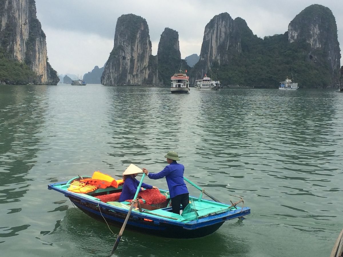 ハノイからハロン湾は片道3時間から4時間でかなり遠いですが、短時間のクルーズかと思いきや意外とたっぷり回って、かつ鍾乳洞観光も付いています。ランチは船上で湾上の岩を観光しながらとれるので効率的、かつ内容もそこそこ満足できるものです。あちこちでお土産を勧められるのは少しうざったいですが、それほどしつこくも無く許容範囲だと思います。なのでハロン湾を一日で回ろう、という私みたいな初心者にはうってつけのツアーだと思います。ガイドさんも日本人のことをよく理解していて、ベトナムの基礎知識から観光ポイントまで、私たちの興味を引きそうな内容を中心に熱心に説明してくれていました。この一日でベトナムの理解が少し深まったような気がします。お勧めします。