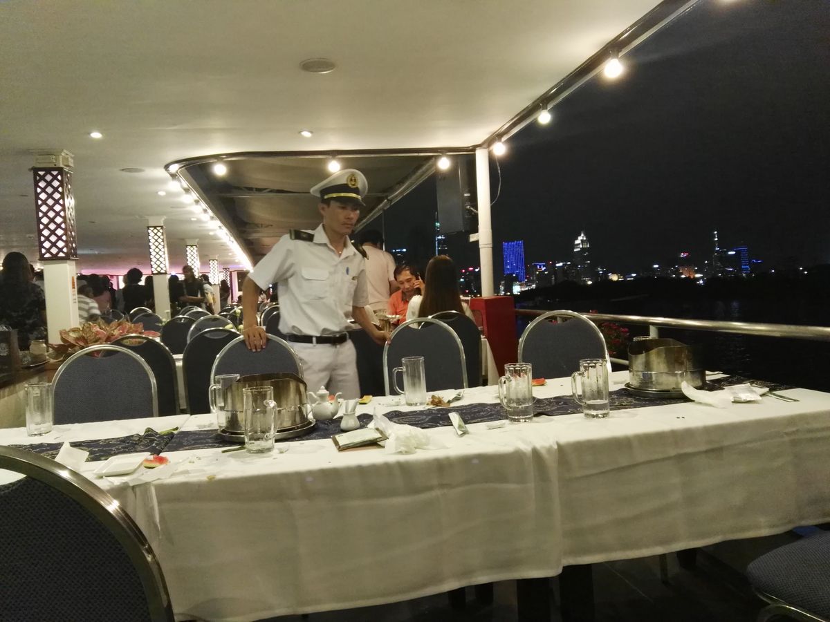1945分に出航だったのでその前にほかのツアーを入れていたので1920分ほどに行きましたが、問題なしでした!席への誘導が全くできず10分ほど待たされてしまいました。ご飯も全く来ず、すごく忙しい感じでした。料理に関しては美味しかったですが量が多くて食べきれませんでした。