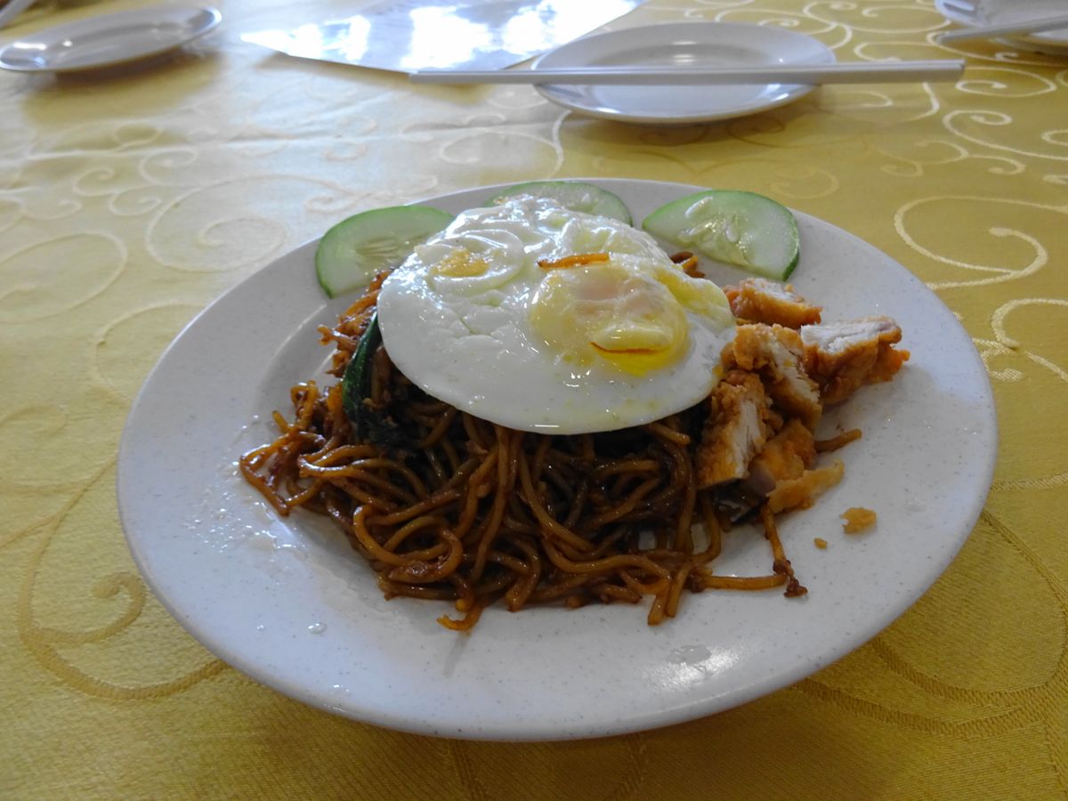 ホテルから13:15にピックアップしてもらって、少しバスで走ったところで軽食とトイレ休憩。ナシゴレンかミーゴレンを選べます。
