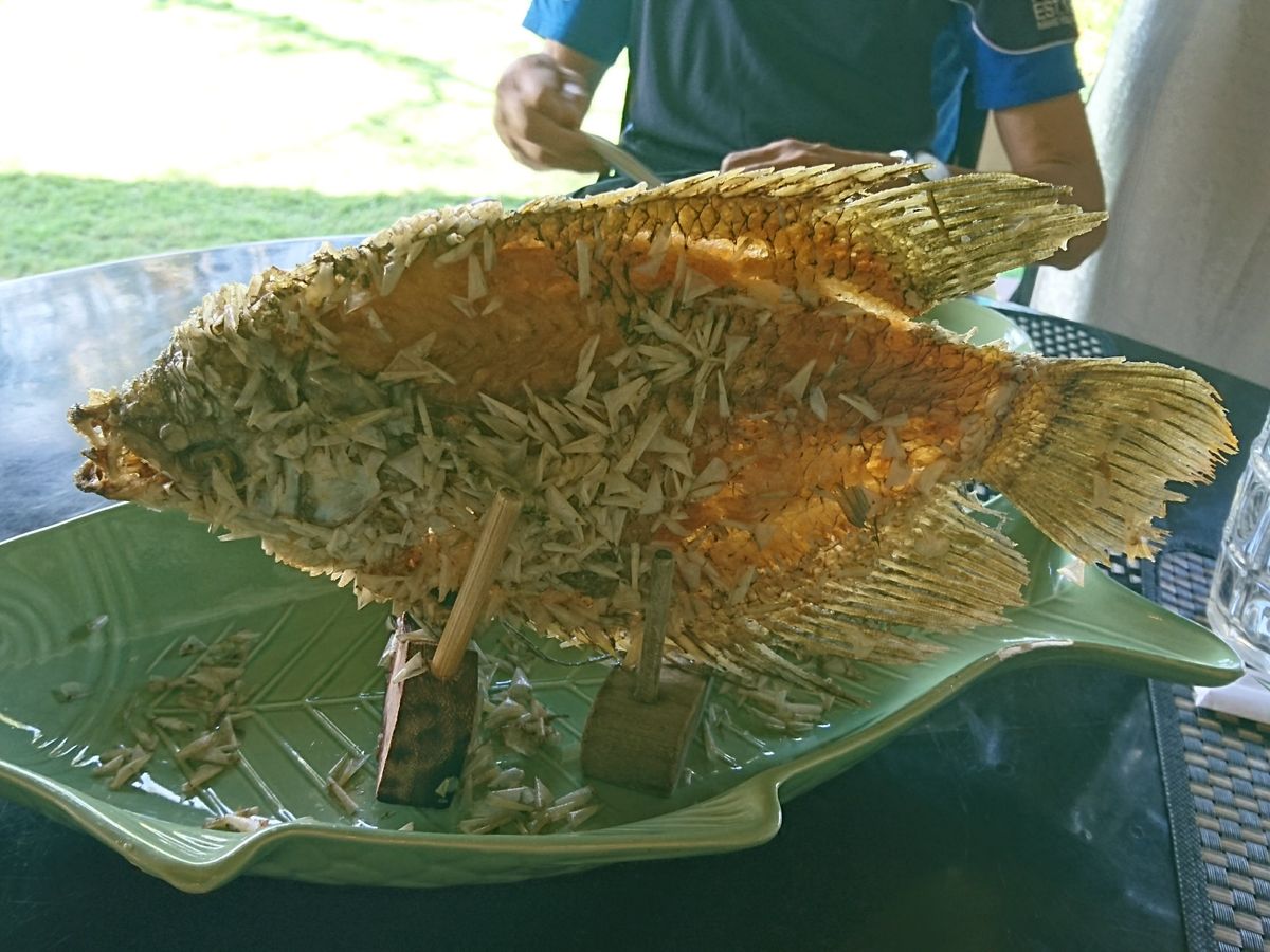 釣った魚の一部は沖のビーチにてBBQとして食べます。