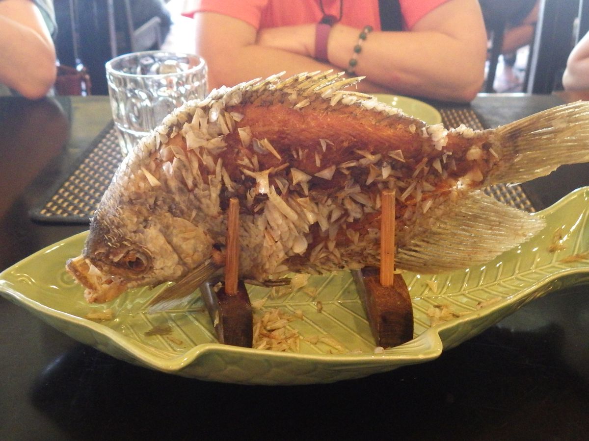 クルーズの船での昼食は、海老のボイル、貝(あさり?)の炒めもの、葉っぱ?、酢豚など。。量も微妙でちょっとこれだけでは満腹にはならず。