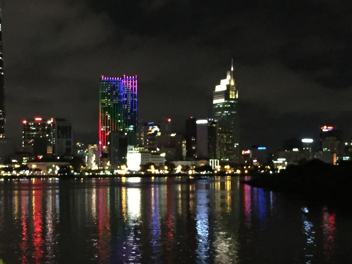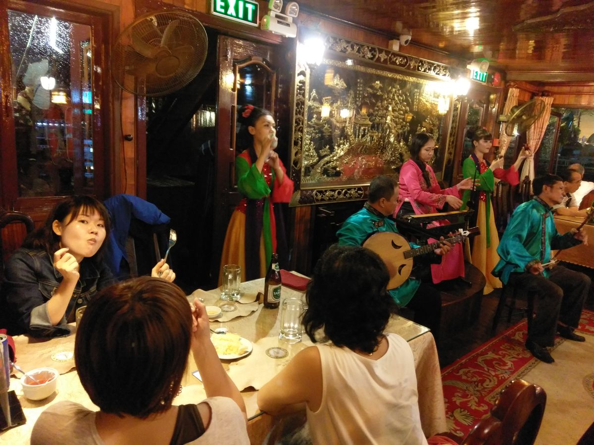 時間がないのでダッシュで最後のディナークルーズへ!私的にはGrilled Beef with Vermicelliが美味しかった。食べ方わからないから、野菜でクルクル巻いたけど、あってたのかな?夜景を見ながら食事をしてると船酔いが。。ちょっと田舎の方?いってあんまりみるものないなっていうときに食事に集中。ステージの方でなにかやっていたけど、BGMつけっぱなしだから音がかぶってよくわからん。w