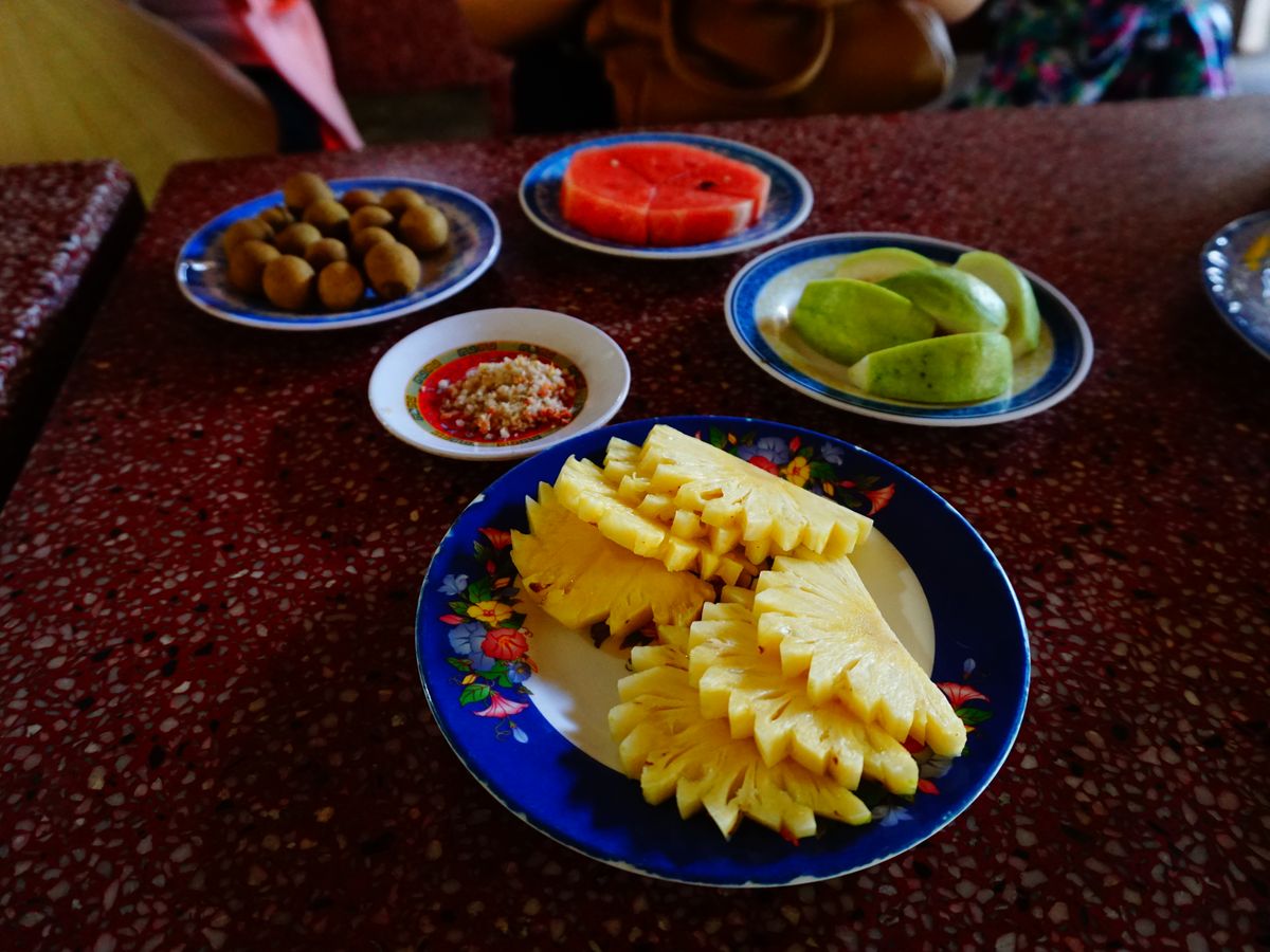 フルーツ試食は、グアバ、スイカ、ローガン、パパイヤ、パイナップルがでたがやぱりパイナップルが一番おいしい。グアバが。。グアバジュースと味が全然違う。