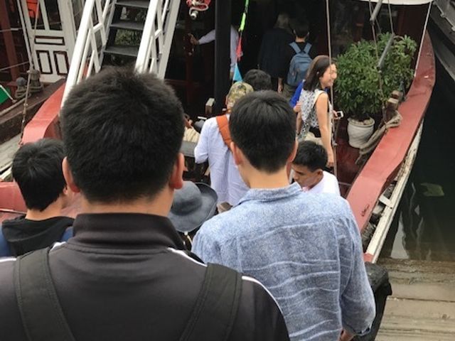 ツアーに参加した外国人の親子はバンブーボートを選んで乗ってたみたいだけど、そのボート内に携帯を落としたらしくクルーズは一旦中断で携帯捜索に。。。