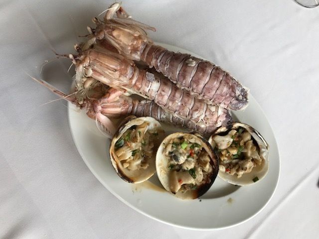 クルーズ船では乗った途端に次々と料理が運ばれてきました。食事の途中で魚商のかたがシャコ、大きなハマグリ、牡蠣、渡り蟹を売りにきて、その場で調理してくれました(渡り蟹は10ドル、シャコは5ドル)。料理の味付けは日本人好みで美味しかったです。ただ食事が終わると、アクセサリーや雑貨などを次々と売りにきてしつこかった...。そこだけが残念かな。