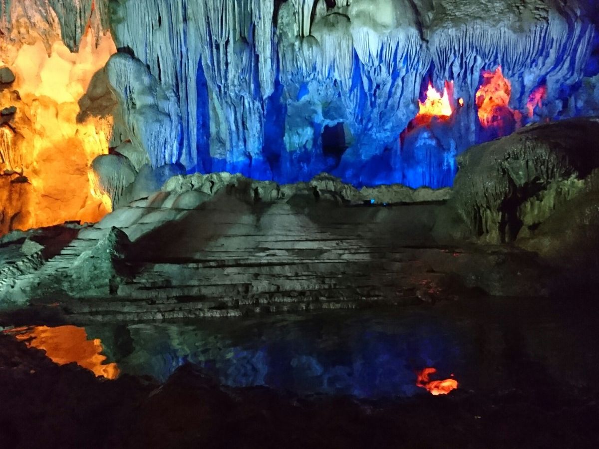 肝心のハロン湾の島々は絶景で、鍾乳洞も感動しました。鍾乳洞はカラフルにライトアップされていて人工物のような雰囲気だったけど。でも全体を通して参加してよかったです。ちなみに鍾乳洞は日本と違ってとても蒸し暑いので扇子や汗拭きシートがあればいいと思います。