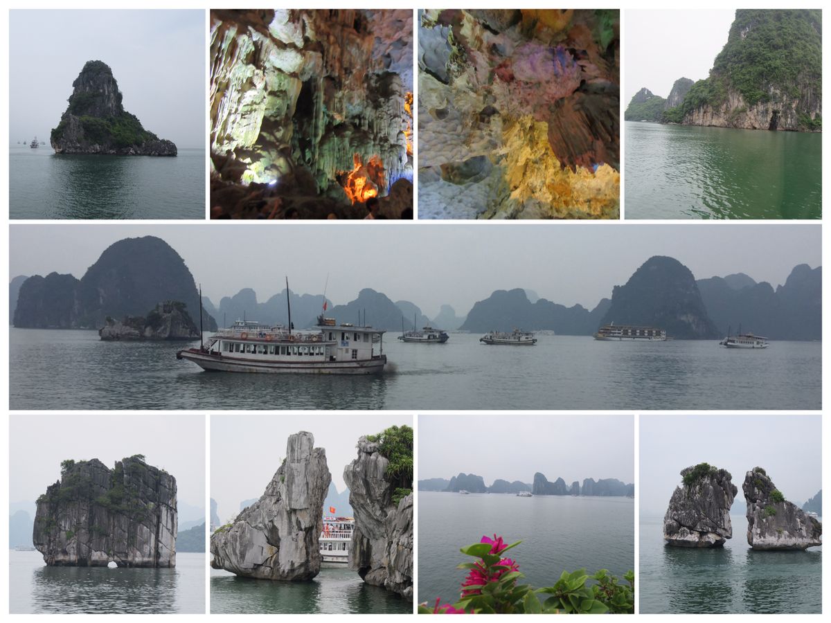 ハロン湾に到着、乗船してシーフードランチがスタートします!味は美味しく、カニ、ハマグリなどが別料金で楽しめます。真珠などの物売りがあり買わなかった時の対応が冷たいです。。。ハロン湾、鍾乳洞は言うまでもなく綺麗です。