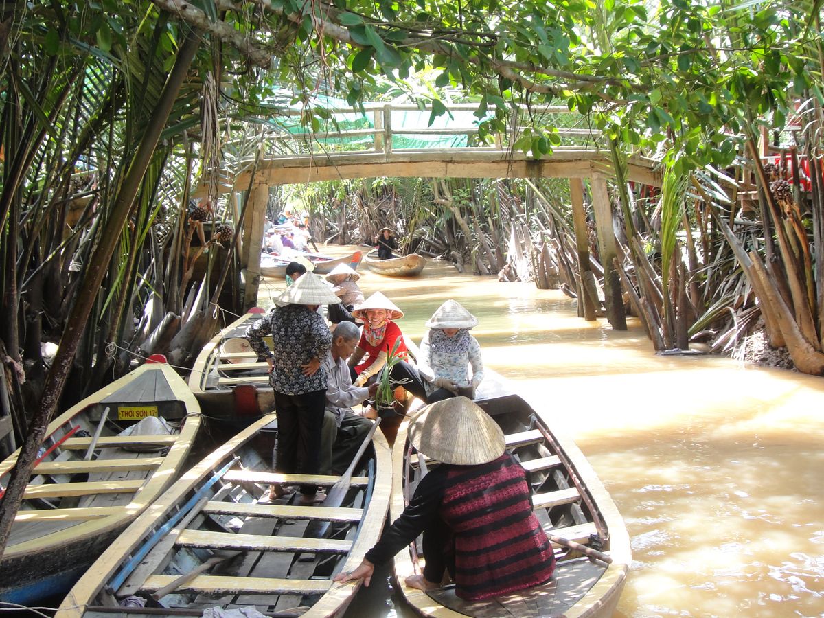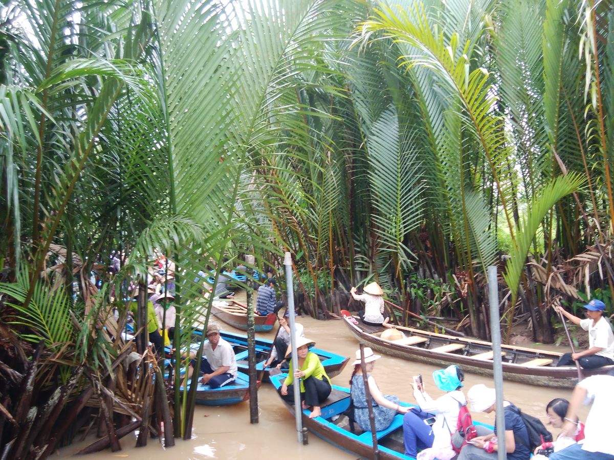 現地はホテルがある繁華街から遠いため、出発前にトイレに行っておくのは必須。到着してからのお茶のサービスが嬉しい。ニシキヘビを首に巻けたり、蜂の巣を触れたり、ベトナム人女性の歌を聞きながらフルーツを食べられたりと盛りだくさん。手漕ぎボートも思ってたより長い時間乗れた。熱帯雨林のマングローブ林の中を他のボートとぶつかりそうになるのをヒヤヒヤしながら乗っているのが楽しかった。当日は雨が降っていたためにカッパを着ててもけっこう濡れた。ボートの座る場所も決して綺麗ではないので、汚れてもいい恰好をしていった方が無難。最後に丸ごとのココナツジュースも配られた。