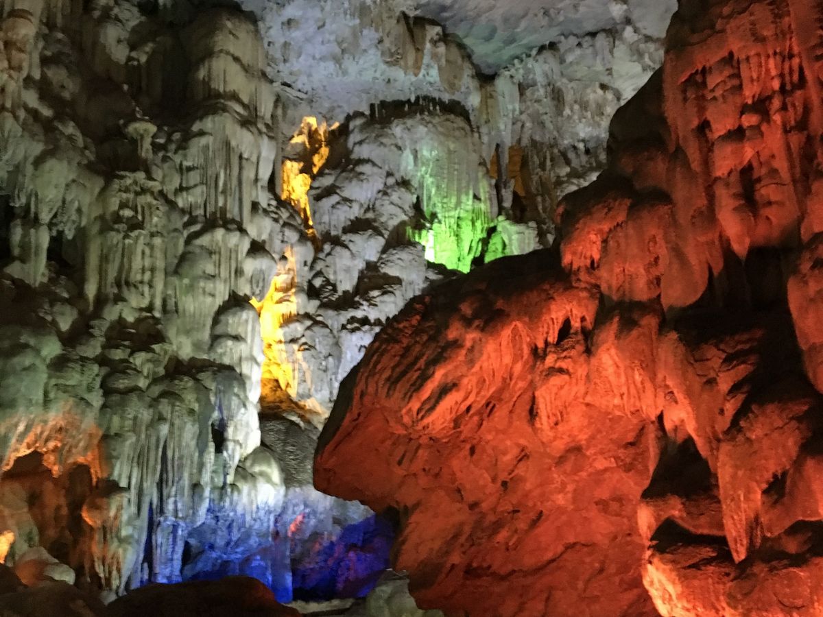 鍾乳洞は思ったより広く歩きました。確実に靴をお勧めします。ライトアップは綺麗でした。