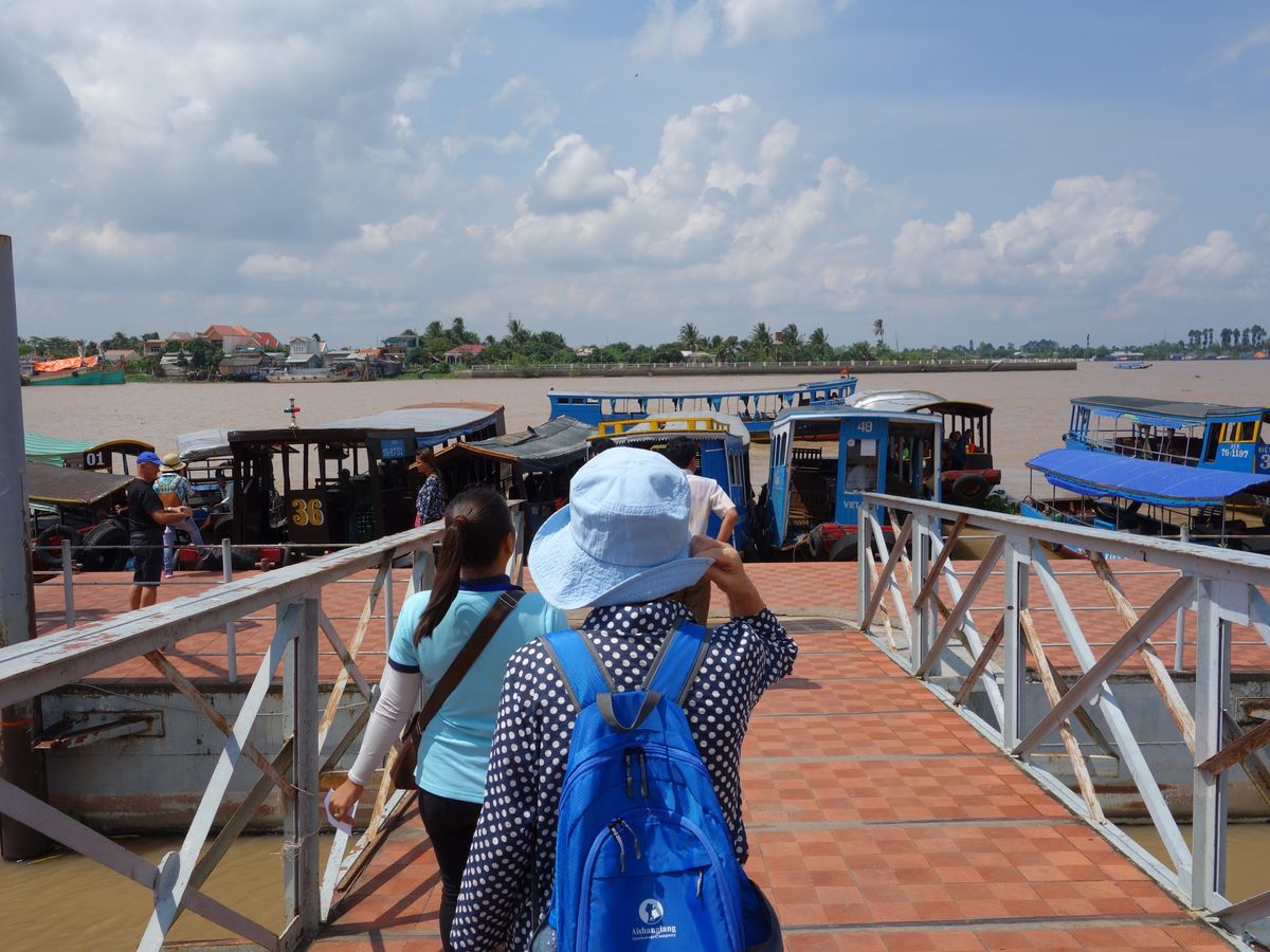 昼食はメコン川名物の揚げた魚を巻いた生春巻。フォー、生野菜、揚げ春巻、ベトナム風のお汁粉、フルーツ等。魚は思ってたよりあっさりしてて美味しかった。フォーは甘酸っぱい味だった。美味しいかどうかは人それぞれの好みかな。