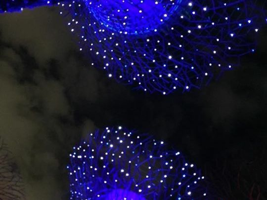 マリーナ・ベイ・サンズの方は「うーん。こんなものかな?」って感じでしたが、ガーデンズ・バイ・ザ・ベイの光のショーは素晴らしかったです。ガイドさんが一番いい場所にいち早く案内してくれて、最高の場所で見ることができました。
