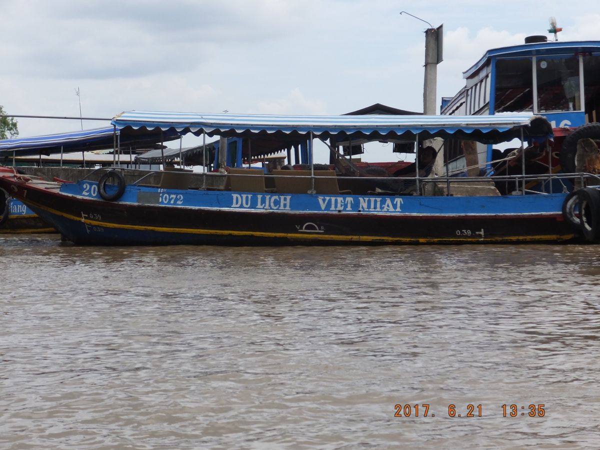 なによりもメコン川クルーズを体験したくて参加しました。小さなボートでの約20分のクルーズでは、自分でこぐ体験もでき、楽しく過ごすことが出来ました。また、このボートに乗る前には、養蜂場でベトナム特産の竜眼の花のハチミツとロイヤルゼリー、またココナッツのキャラメルなどのお土産も購入できました。 市内への移動時には、道がすぐ川のようになる南国特有の本当に激しいスコール、また、毎日のオートバイの凄まじい交通渋滞なども経験できました。