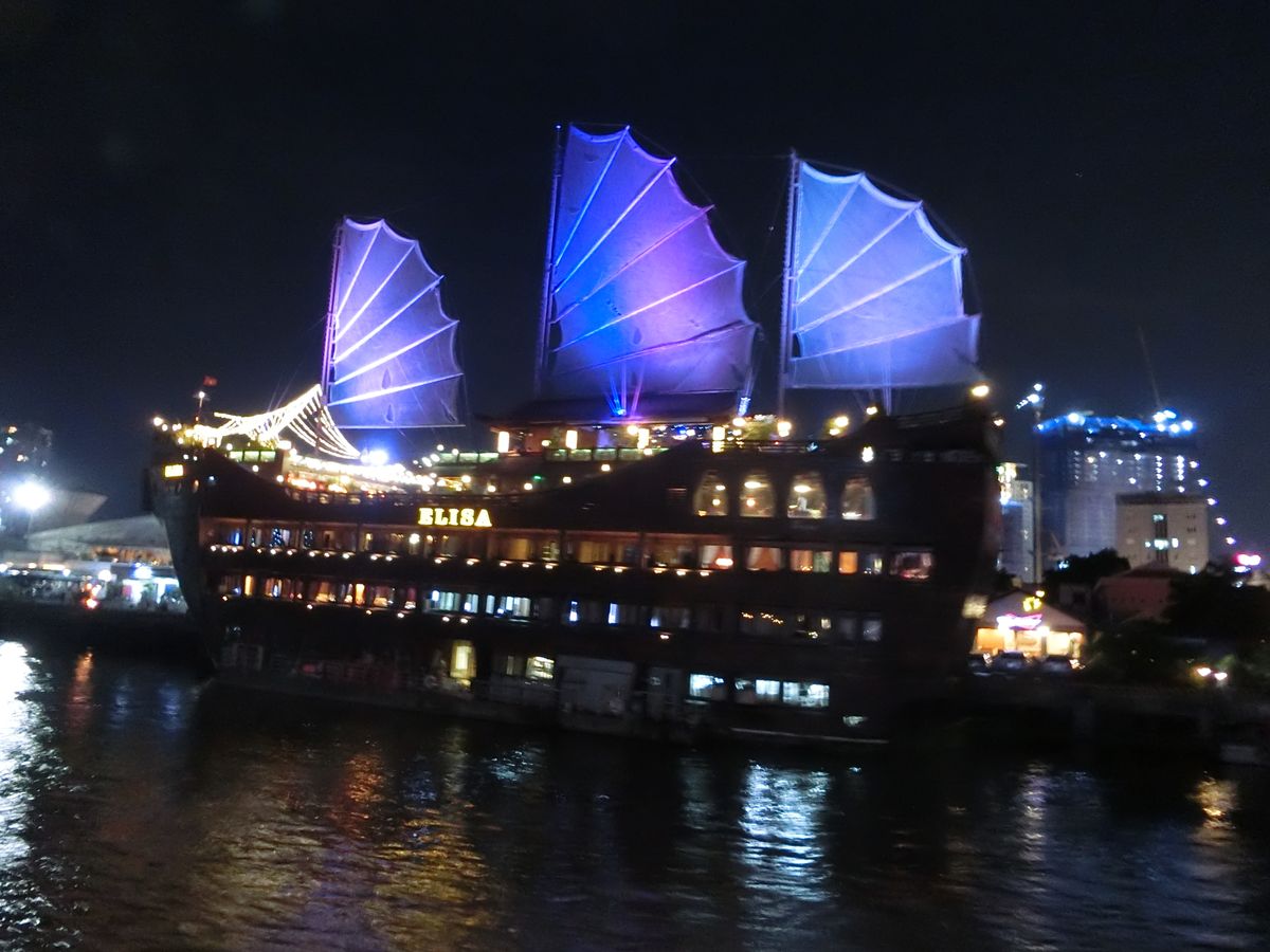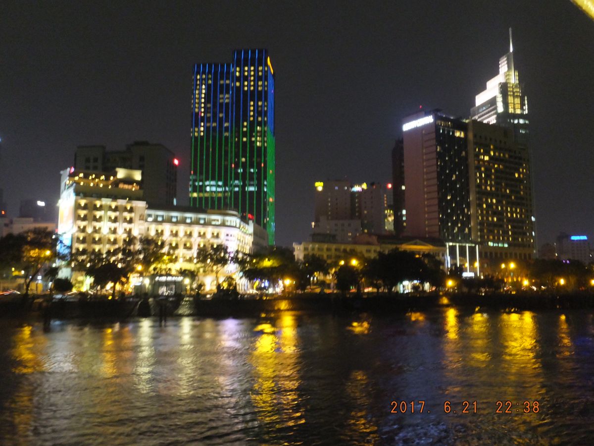 夜の部はマイクロバスで移動。水上人形劇は特等席で堪能。左右に演奏者と歌い手と人形によりベトナムがどうやって栄えてきたかを鑑賞。最後に人形遣いの人が出てくるのだが、髪が濡れてなくてどうやって動かしていたのか不思議。意外に楽しかった。サイゴン川ディナークルーズは心地よい風のなか夜景を堪能しながらのお食事。1時間のクルーズのため、食べるのにいっぱいで夜景に目が行くころには45分経っていました。もう少し時間があればよかったですが、お料理もおいしくお腹いっぱいになりました。