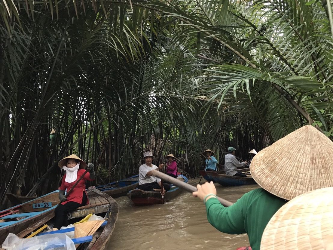 朝8時過ぎからバスでミトーへ。その後船に乗り換えて島に向かいます。船内でココナッツジュースを飲んだり、島で蜂蜜ドリンク、フルーツなど色々頂きました。手漕ぎボートでのメコン川クルーズはノンラーをかぶって写真を撮ることもでき、かなり楽しめました!昼食はエレファントフィッシュの揚げ物の春巻き、甘いお餅を揚げたボールのようなものなど色々出てきました。帰りにチャイナタウンにあるお寺に寄って、4時ぐらいにホテル近くで降ろしてもらいました。6時に朝集合したホテルにお迎えが来る予定だったのが20分ぐらい遅れてかなり不安になりました。集合場所も宿泊しているホテルではないため、連絡を取ることも難しかったので、集合時間は確実に来れる時間にした方がいいと思います。水上人形劇は言葉は分からなかったけど、音楽と人形の動きでとっても楽しかったです。