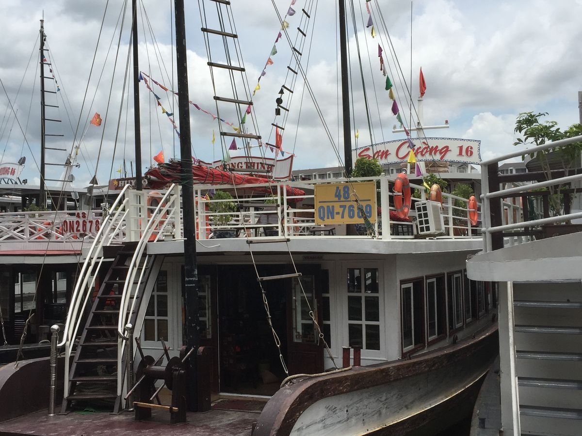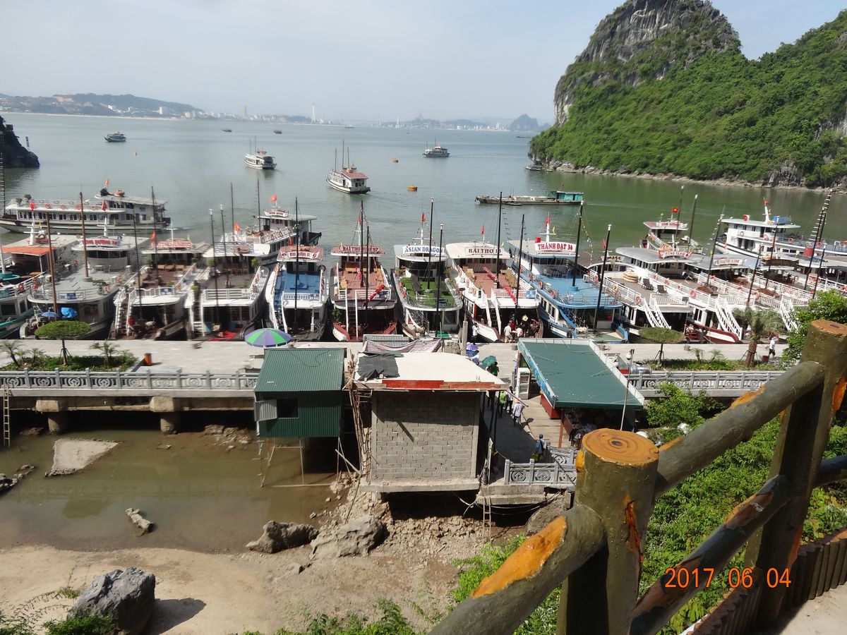 結局 眠れぬままハロン湾に到着。個人で来たら乗船切符買うのに小一時間かかりそうな ごった返す切符売り場をすり抜け 我らツアー一行は船へ直行。