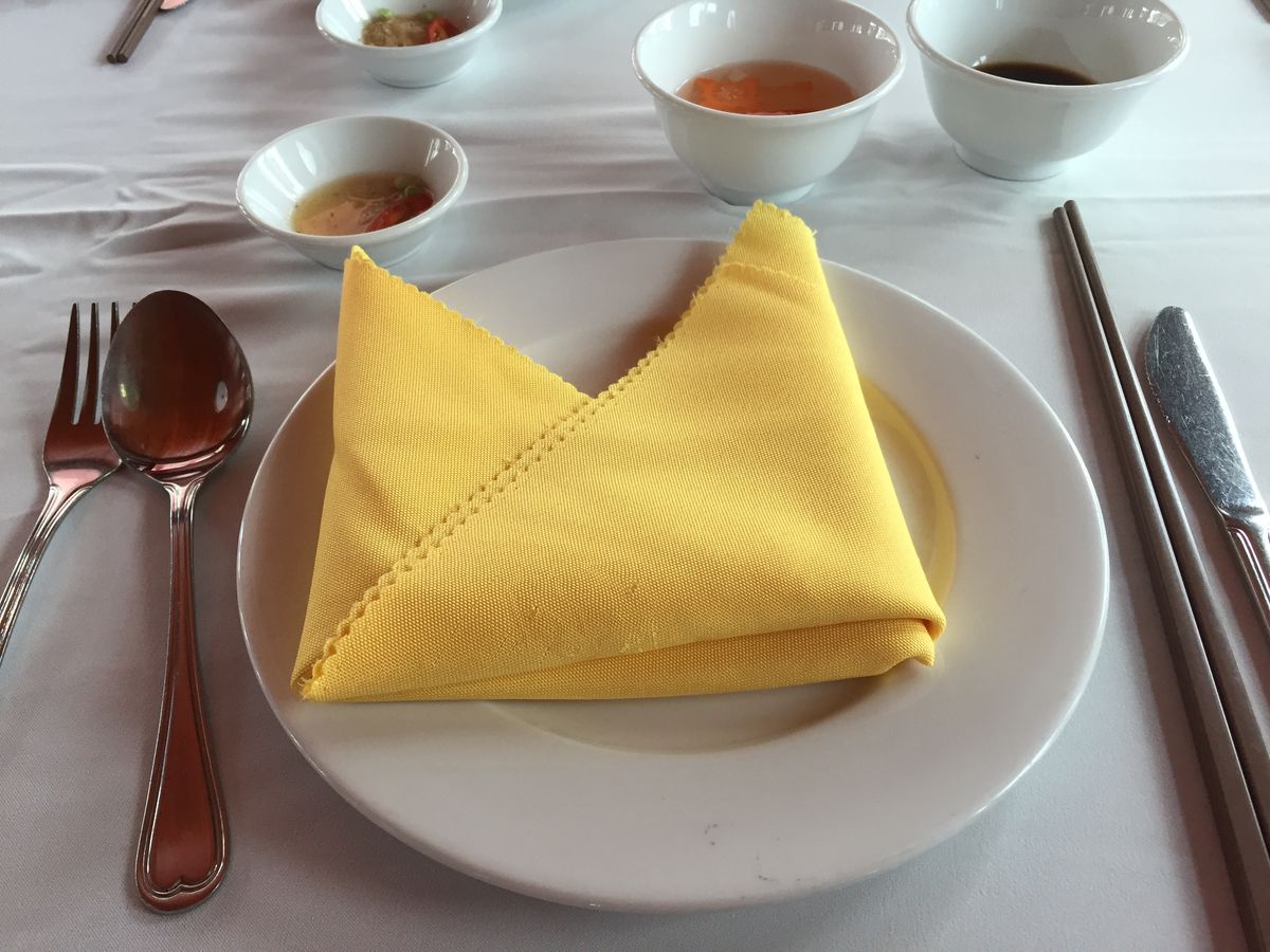 料理は、最高のバイキング!そして、テーブルクロスもナフキンも安物のペーパーじゃなくて、布地で高級感有り。また、心憎い事に袋入りの割り箸も用意。