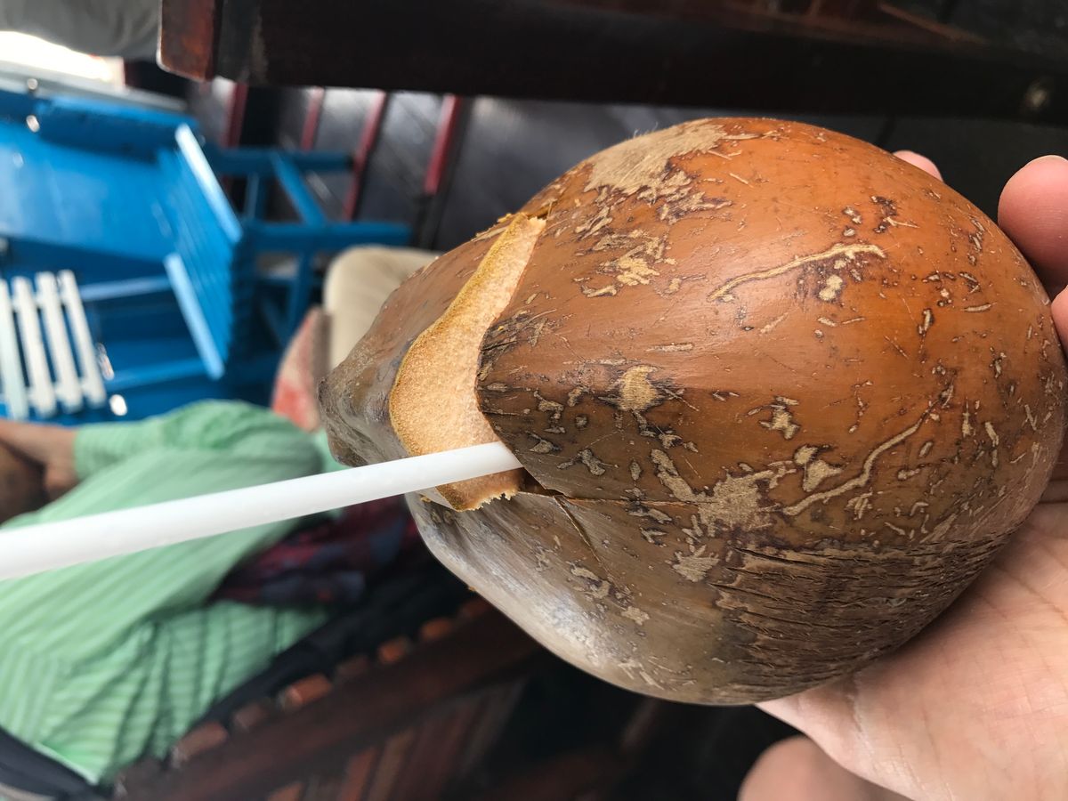 メコン川のクルーズはウェルカムドリンクでココナッツを割ってストローでいただいたり、蜂蜜茶やキャラメル、フルーツの試食もあり