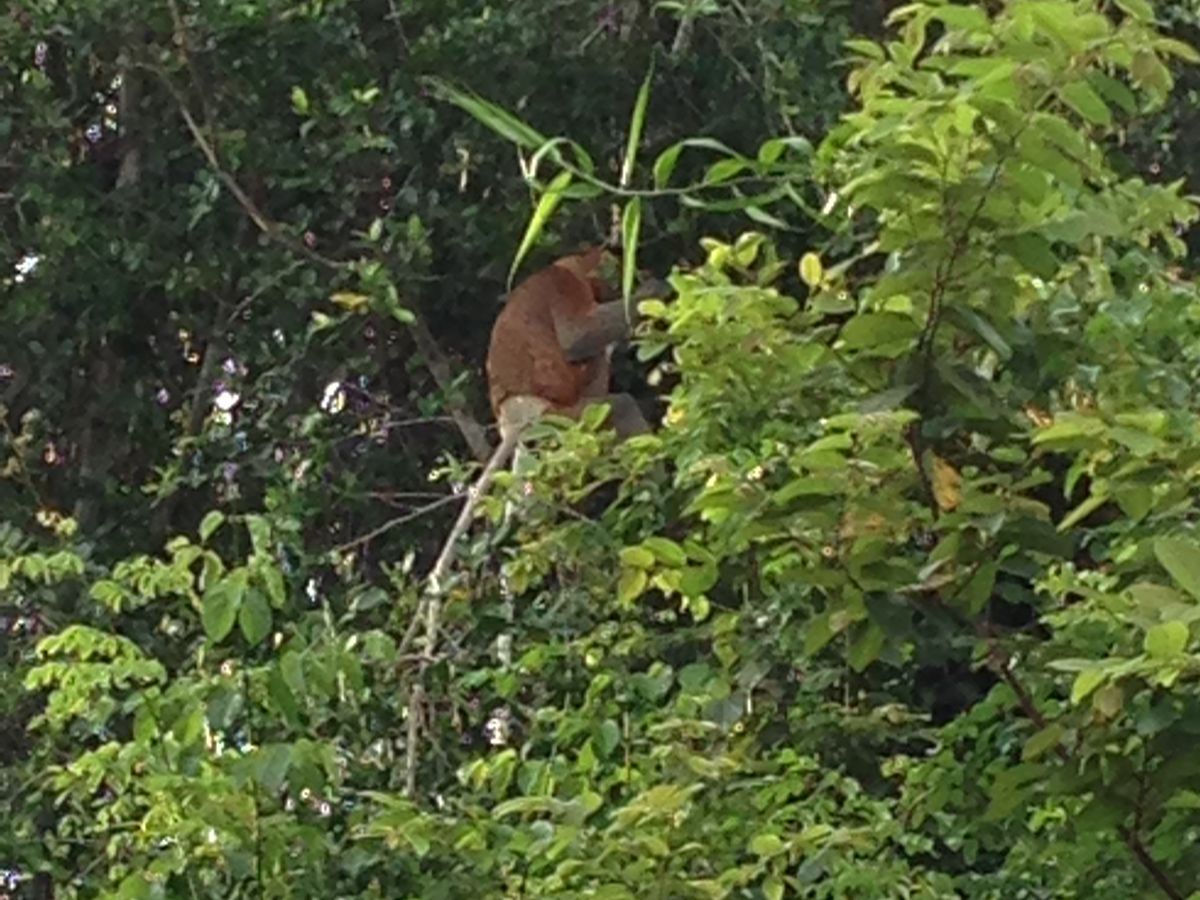 テングザルは遠くにいる場合が多いので双眼鏡があると本当に便利ですね。