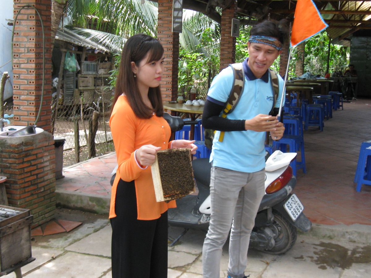メコン川まではクルーザーでゆっくり行きます。とても気持ちが良かったです。島へついたらまず、蜂蜜農家の場所で蜂蜜とココナツオイルと紅茶の試食を座ってさせて貰えます。さらに、大きな蛇を首に巻いて写真撮影の時間もありました。次にココナツ工場へ行きできたてのココナツキャンディを食べました。商品も手頃なお値段で美味しかったので購入しました。その後、おやつタイムで小さなレストランでベトナムの民謡を聴きながら現地の美味しいフルーツを何種類も食べきれない程食べれます。