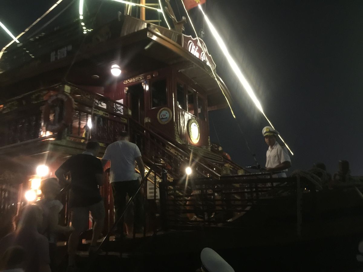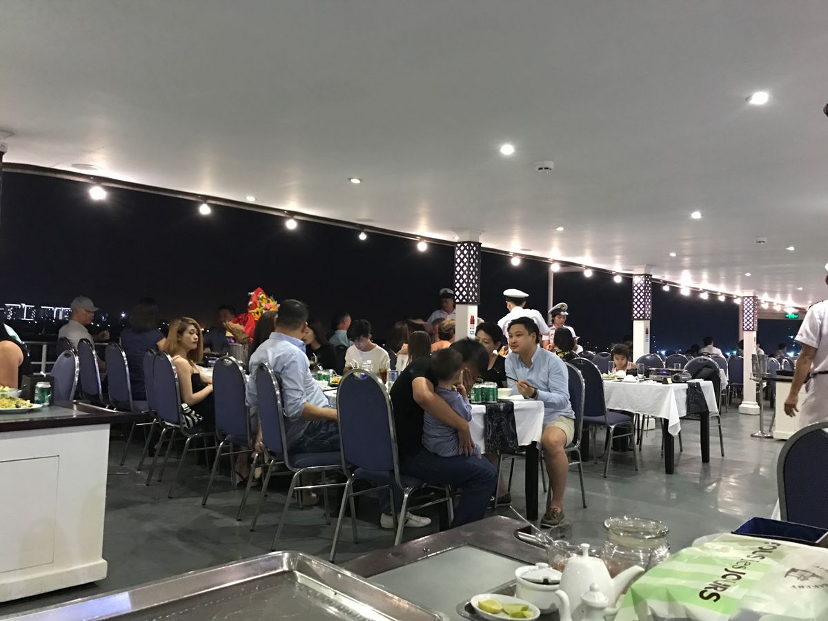 ディナークルーズは海鮮鍋とかもあり、かなりお腹いっぱいになりました。時間が限られているので夜景を見ながら食べる、写真撮る、と少々忙しいですが、船から見る夜景もすごく良かったです。風がいい感じで気持ちよかったです。ほんとにベトナムを1日で凝縮して堪能できるツアーでした。大満足間違いなしです。