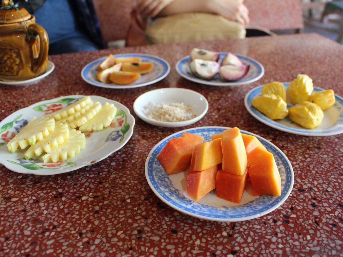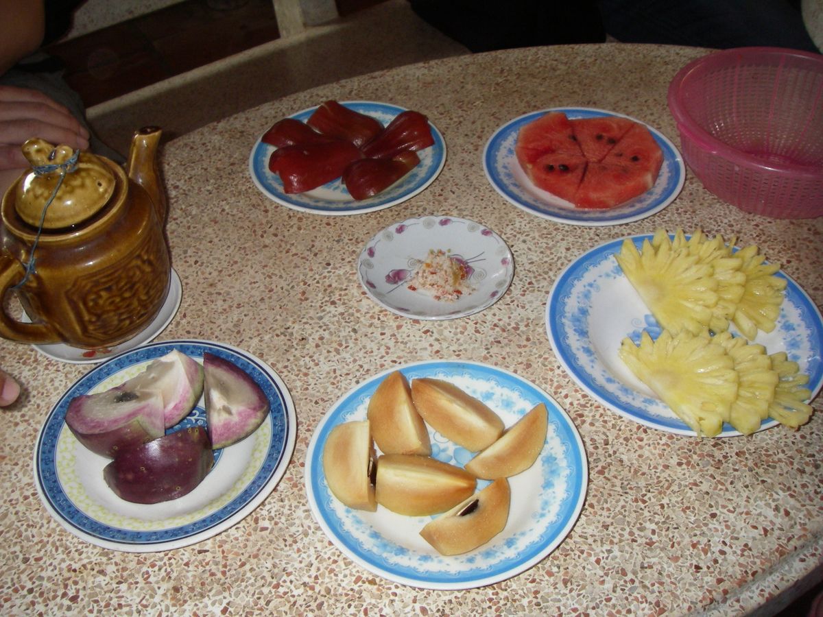 メコン川では、ココナッツキャラメル、フルーツ、はちみつなどを頂き、現地の方のお家を