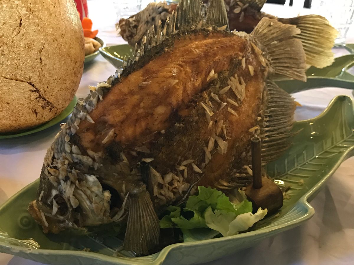 メコン川クルーズ後のエレファントフィッシュのランチはすっごく美味しかったです。