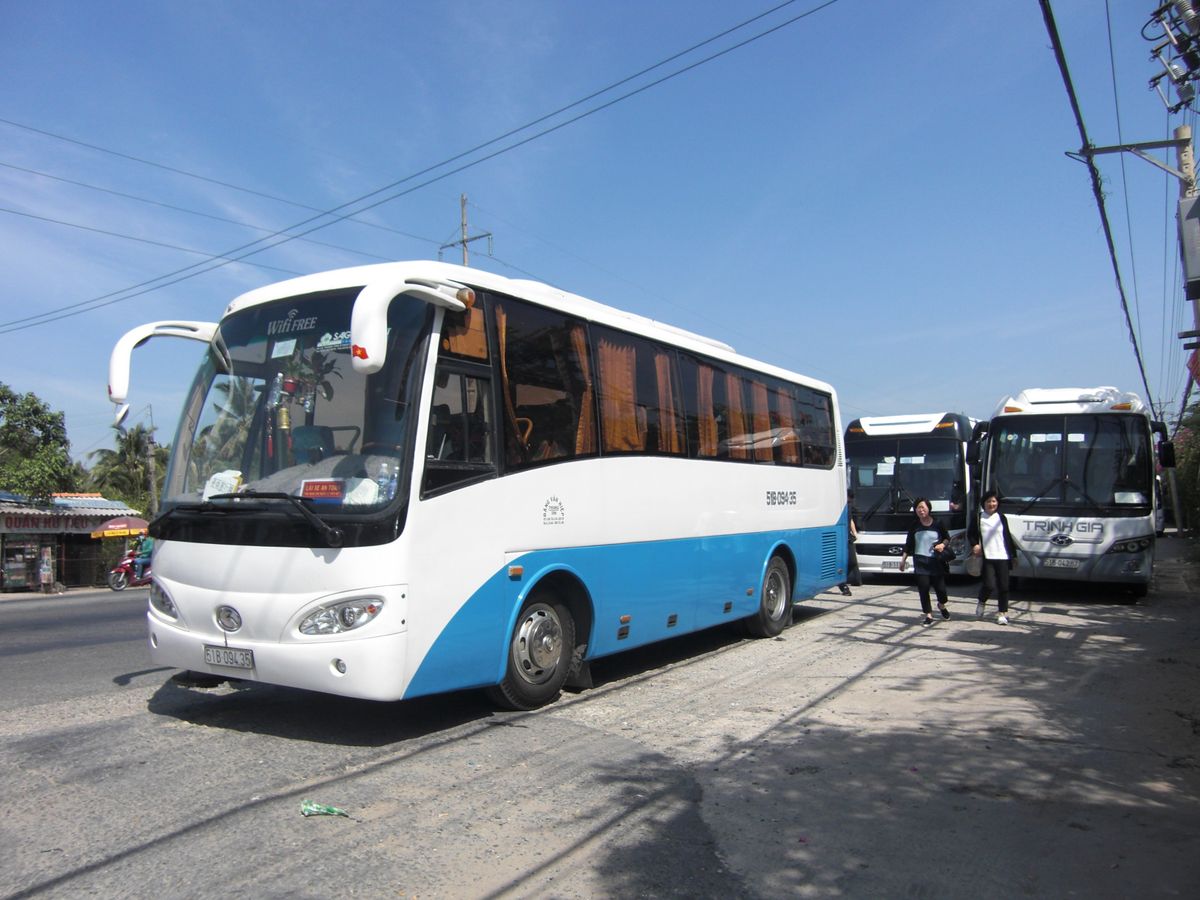 とてもキレイでクーラーもきいたバスだったので、メコン川まで1時間半ほどかかりましたが子連れでも快適に過ごせました。