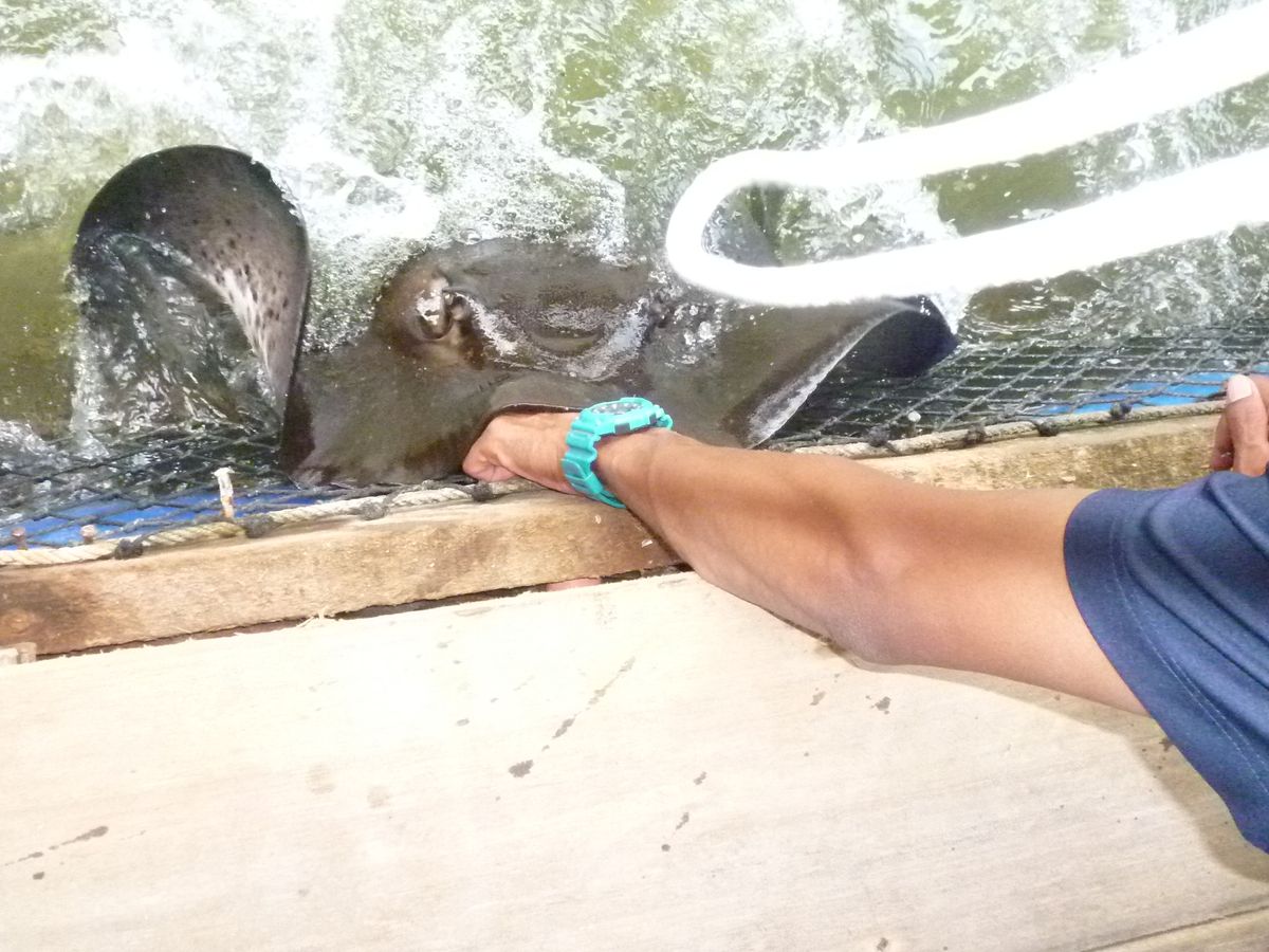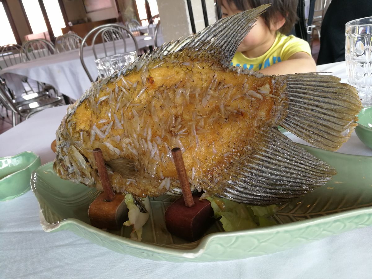 そのあとにエレファントフィッシュを食べにレストランへ。ライスペーパーでエレファントフィッシュと野菜、パイナップルを巻き、タレにつけていただきました。これはもう絶品です。エレファントフィッシュは少し臭みがあるのですが、パイナップルがその臭みを消してくれるので気にならずに食べられました。