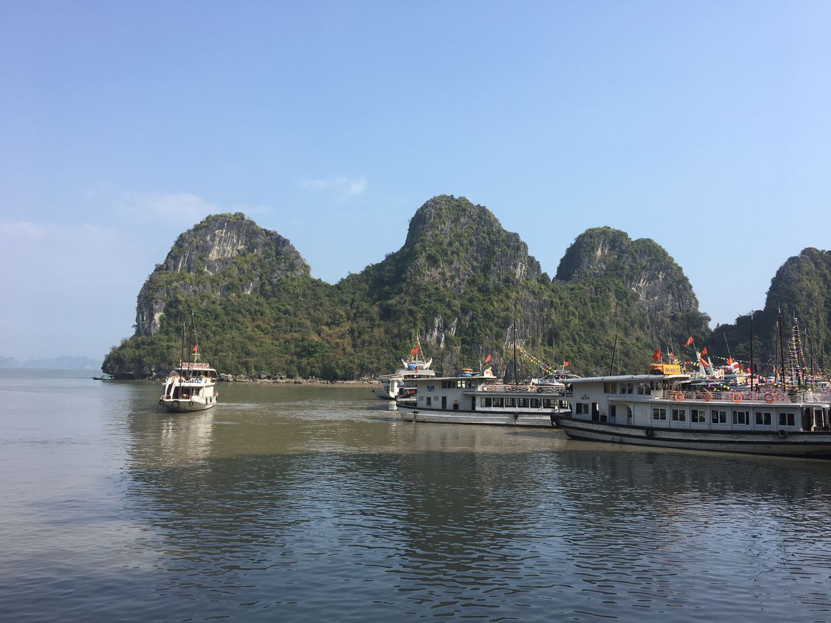 世界遺産なので一度は行ってみたいと思い参加しました!ハノイ市街地からバスに揺られて3~4時間程度。往復ともおみやげ屋さんでトイレ休憩があります。おみやげ屋さんでは結構な営業があるので、いらない時ははっきりNOと言う勇気が必要です。ハロン湾に到着するとすぐ船に乗ってランチがスタート。スタッフの方がエビをむいてくれますが、手際の良さに脱帽です!食事が物足りない方は小舟で食材を売りにくるので購入することもできます。その場で調理してくれますよ。