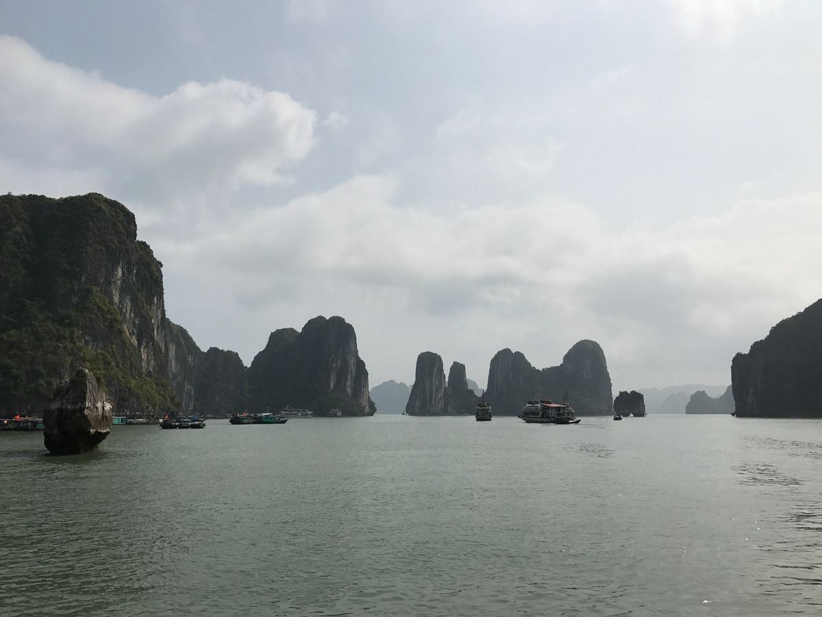 母と二人で参加しました。冬の時期は晴天が少ないそうで曇っていましたが、むしろハロン湾らしい雰囲気を味わえました。ハノイ市内からは距離はそうでもないものの、道路状況が悪いので時間がかかります。19:30過ぎに戻ってから夕食に出かけるのが大変でした。ただし一度は目に焼き付けておきたかったハロン湾の景色を思う存分楽しめました。