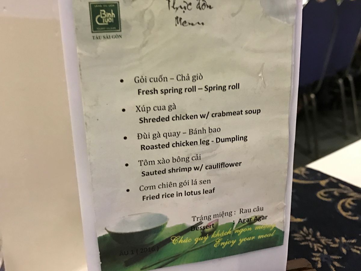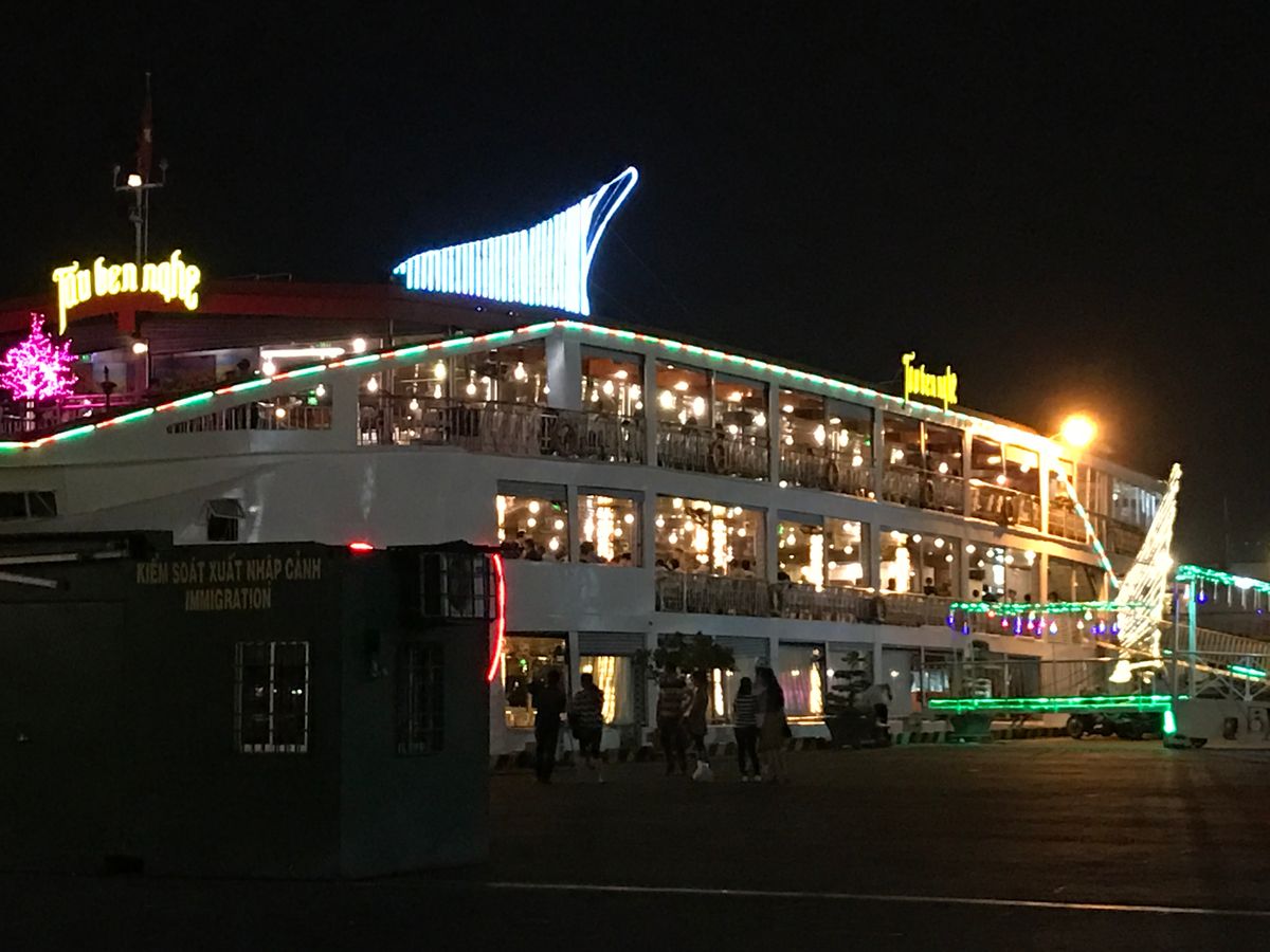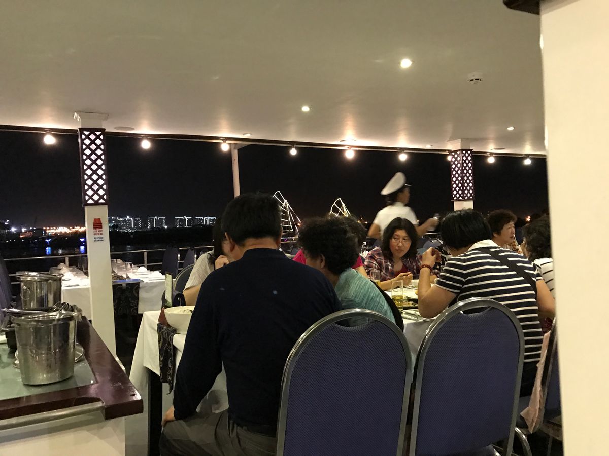 3階席のオープンな船内でベトナム料理を楽しめます。歌や踊りなどもあり、一時クラブみたいな雰囲気。お料理はランチの方がおいしいですが、夜景や雰囲気で非日常を味わえるのがとてもよかったです。