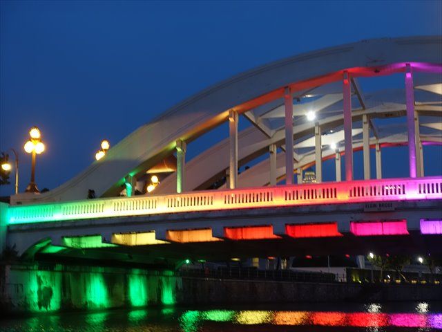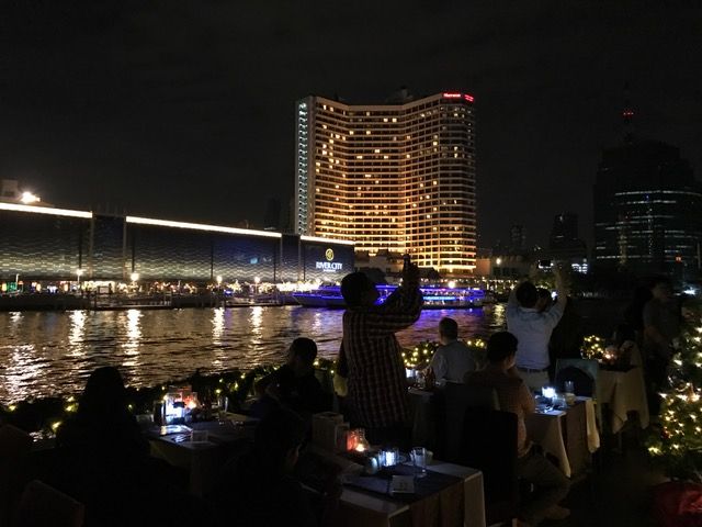 中はガヤガヤした雰囲気です。川沿いのホテルやショッピングセンターの光がきれいでした。