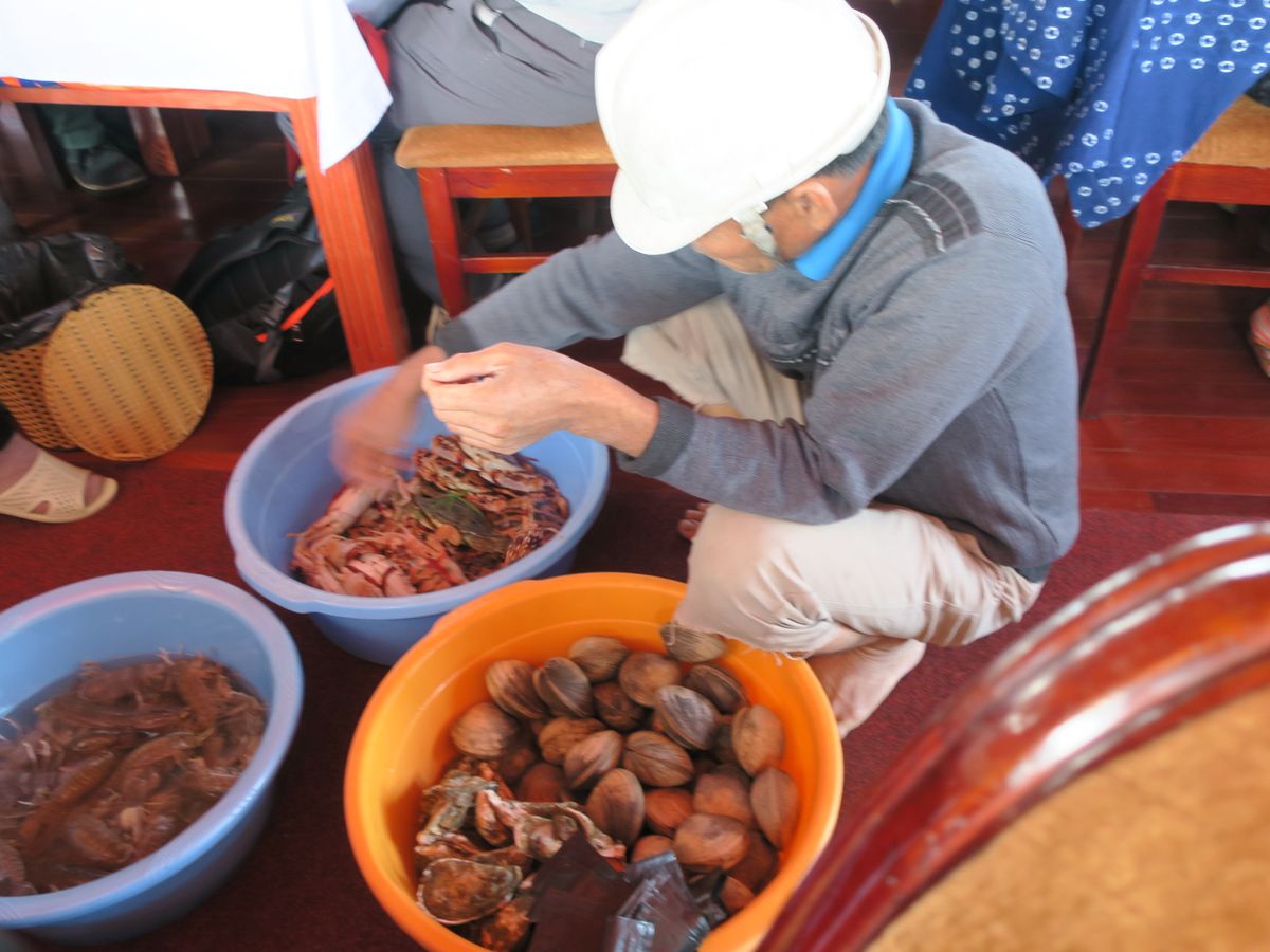 昼食は船上でのシーフードでしたが、売りに来た漁師さんから買って調理してもらったカキや