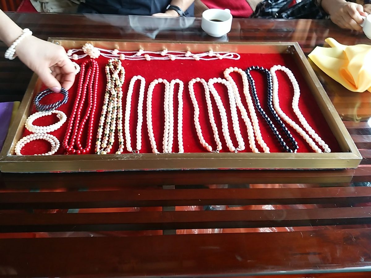 刺繍の色紙など街中で売っているものは割高な気もしましたが、真珠やサンゴのアクセサリーはかなりきれいです。