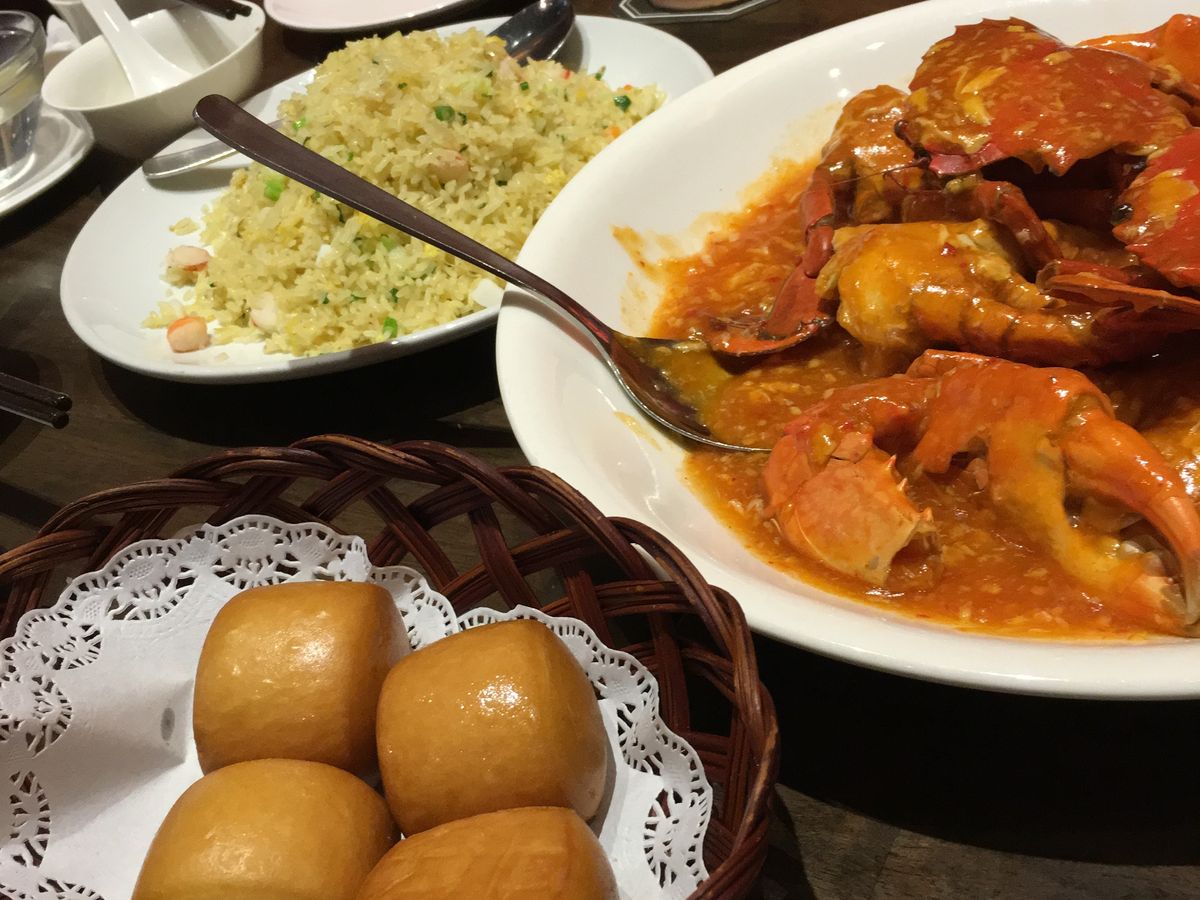 RedHouseという有名なお店でチリクラブ以外にもいろいろ出てきてお腹いっぱいになります。お目当てのチリクラブはカニの身自体はあまり入ってなくて少し残念ですが、ソースをパンやチャーハンにかけて味わえるのが良いという事なのかな?